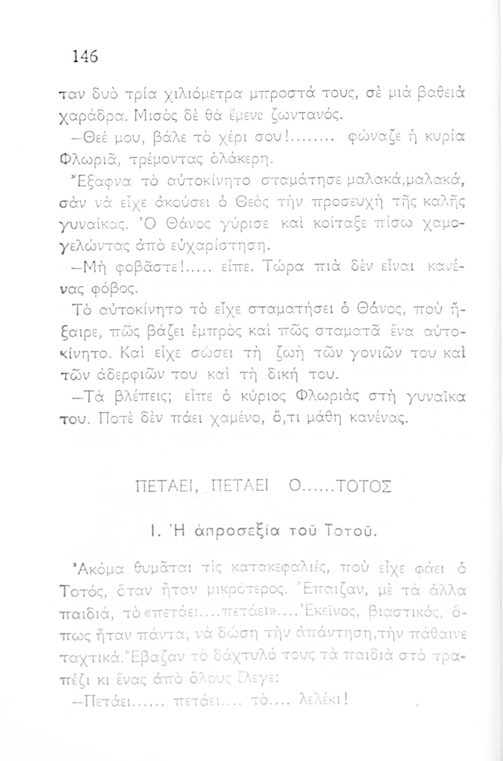Αναγνωστικό ΣΤ΄ Δημοτικού που περιλαμβάνει πεζά και ποιήματα εμπνευσμένα από τη θρησκευτική, εθνική, οικογενειακή και κοινωνική ζωή, και την ελληνική φύση.