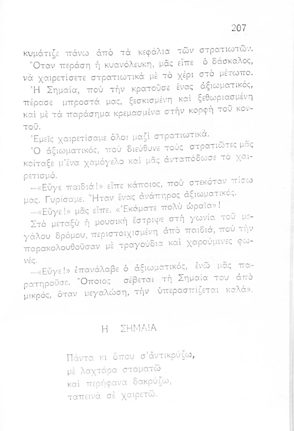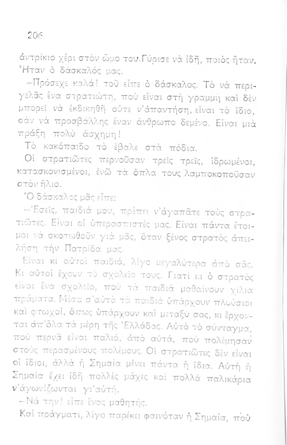 Αναγνωστικό ΣΤ΄ Δημοτικού που περιλαμβάνει πεζά και ποιήματα εμπνευσμένα από τη θρησκευτική, εθνική, οικογενειακή και κοινωνική ζωή, και την ελληνική φύση.
