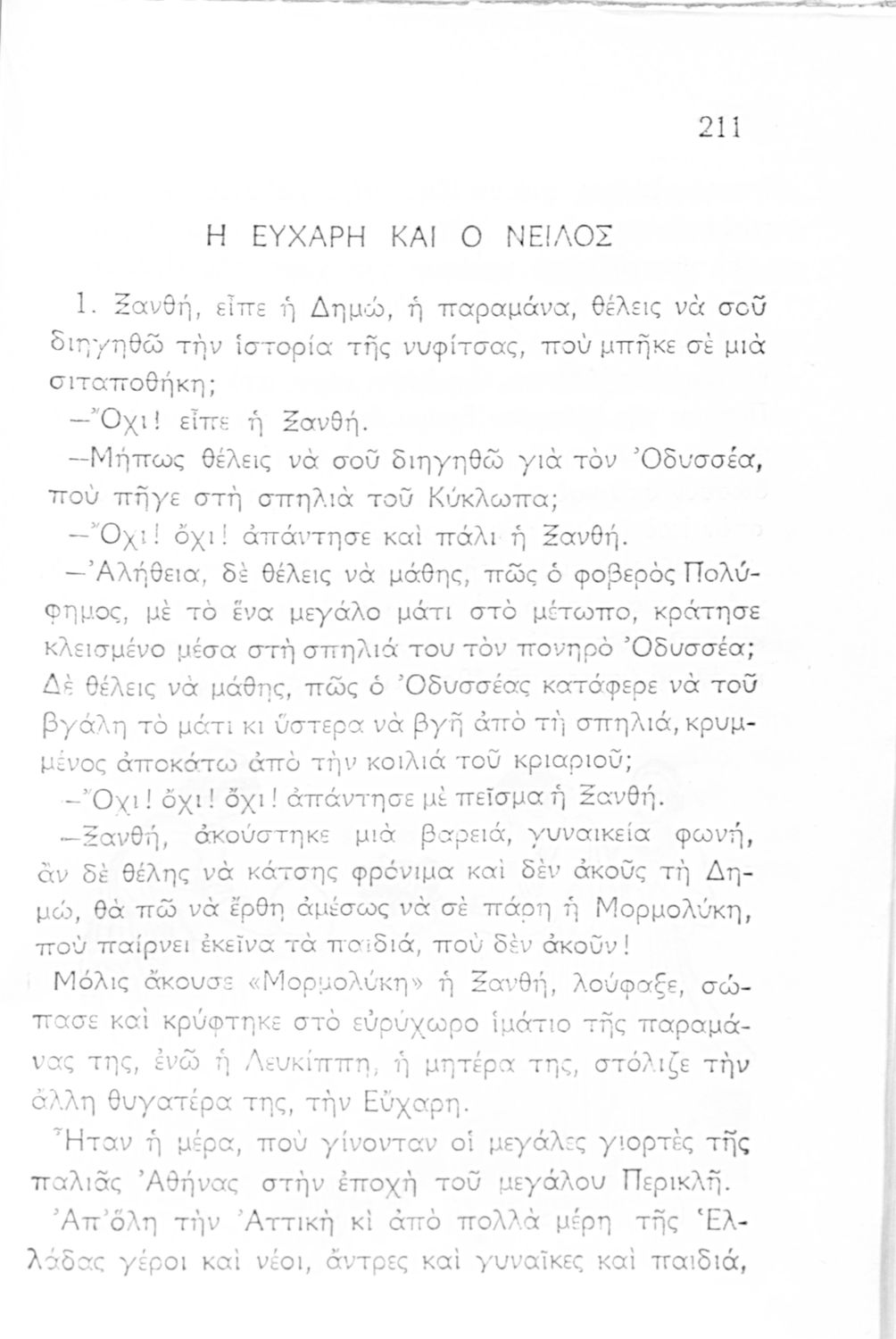 Αναγνωστικό Δ΄ Δημοτικού που περιλαμβάνει θέματα από την θρησκευτική, οικογενειακή και σχολική ζωή του παιδιού, την ελληνική μυθολογία και ιστορία και τη ζωή των ζώων.