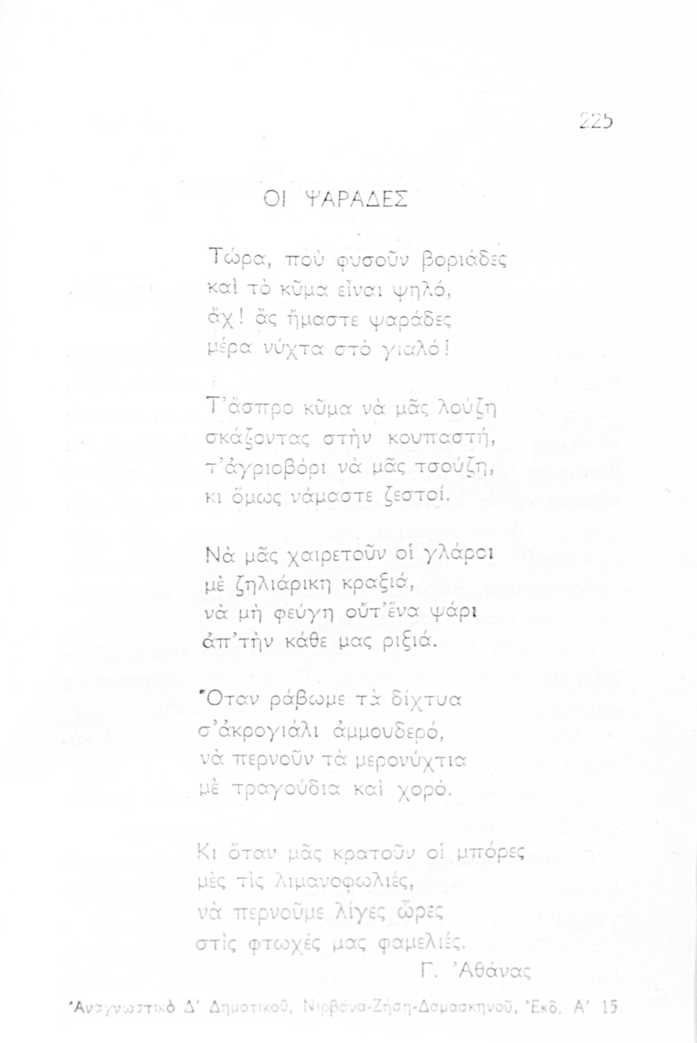 Αναγνωστικό για τους μαθητές της Δ΄ Δημοτικού που περιλαμβάνει ποιήματα και πεζά με θέματα από την καθημερινή ζωή των Ελλήνων, τη φύση, την ιστορία και την θρησκεία τους.