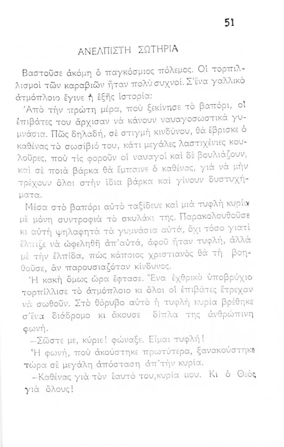 Αναγνωστικό ΣΤ΄ Δημοτικού που περιλαμβάνει πεζά και ποιήματα εμπνευσμένα από τη θρησκευτική, εθνική, οικογενειακή και κοινωνική ζωή, και την ελληνική φύση.