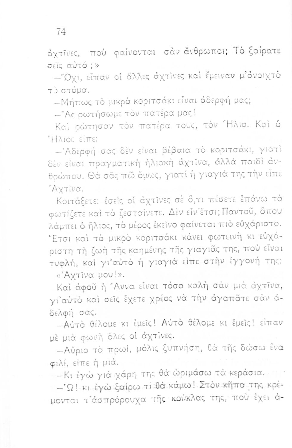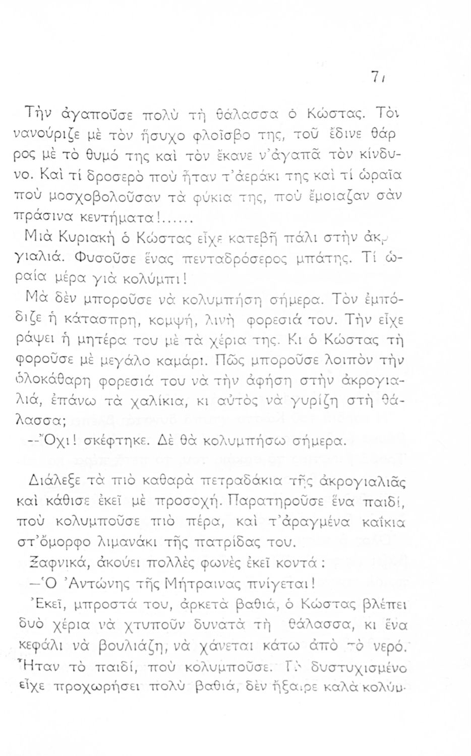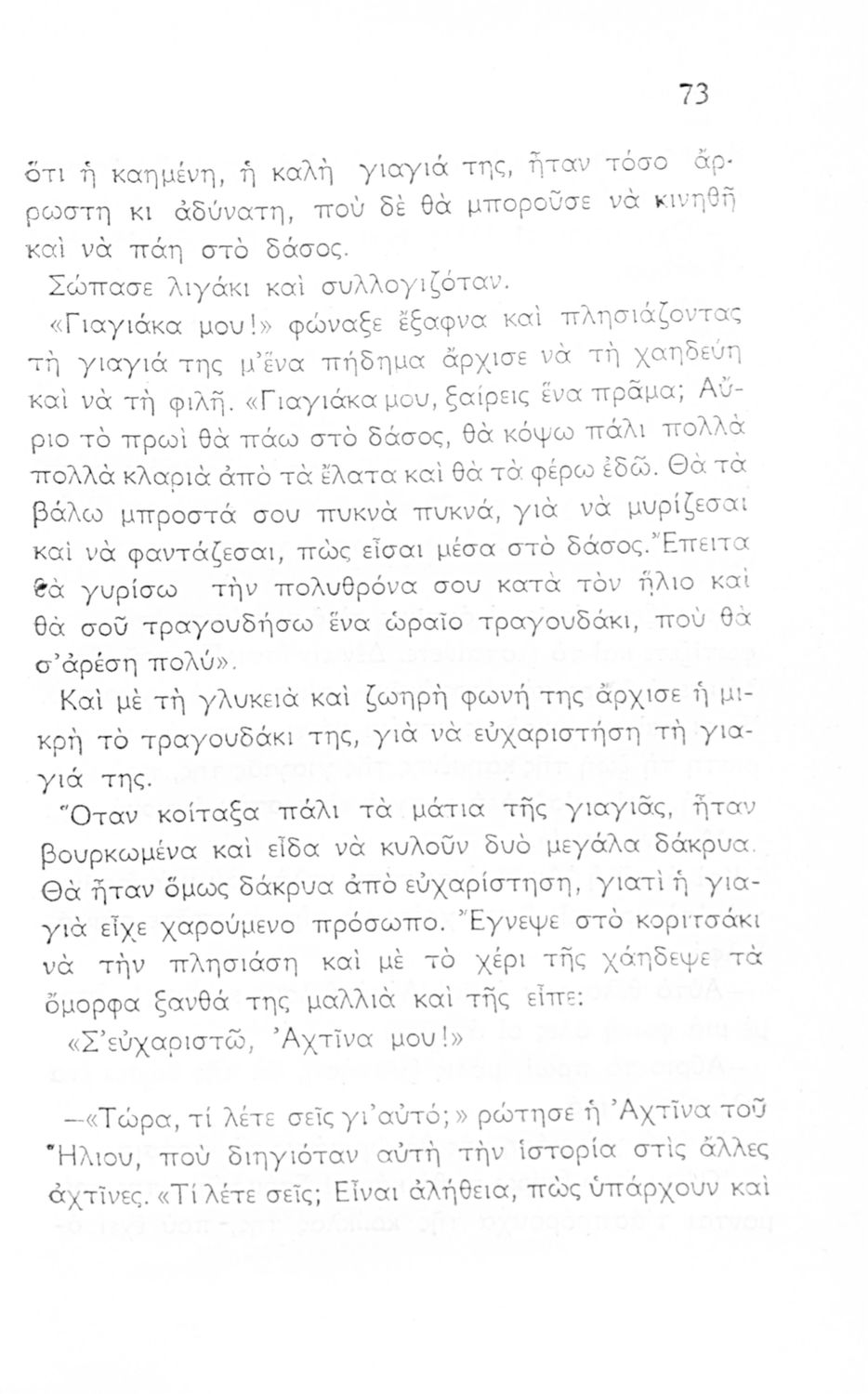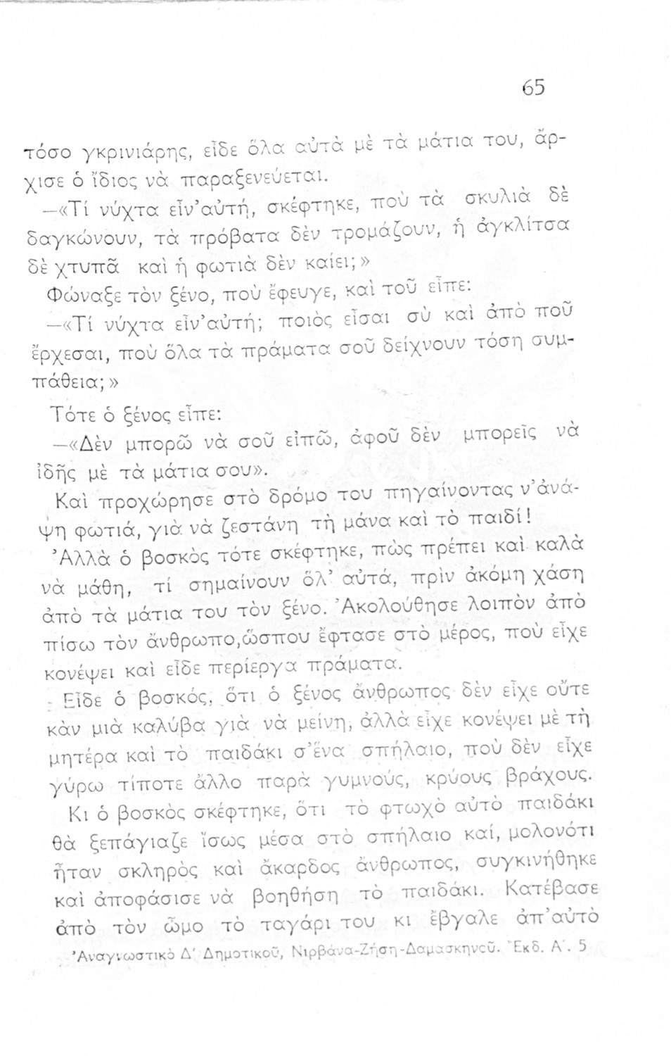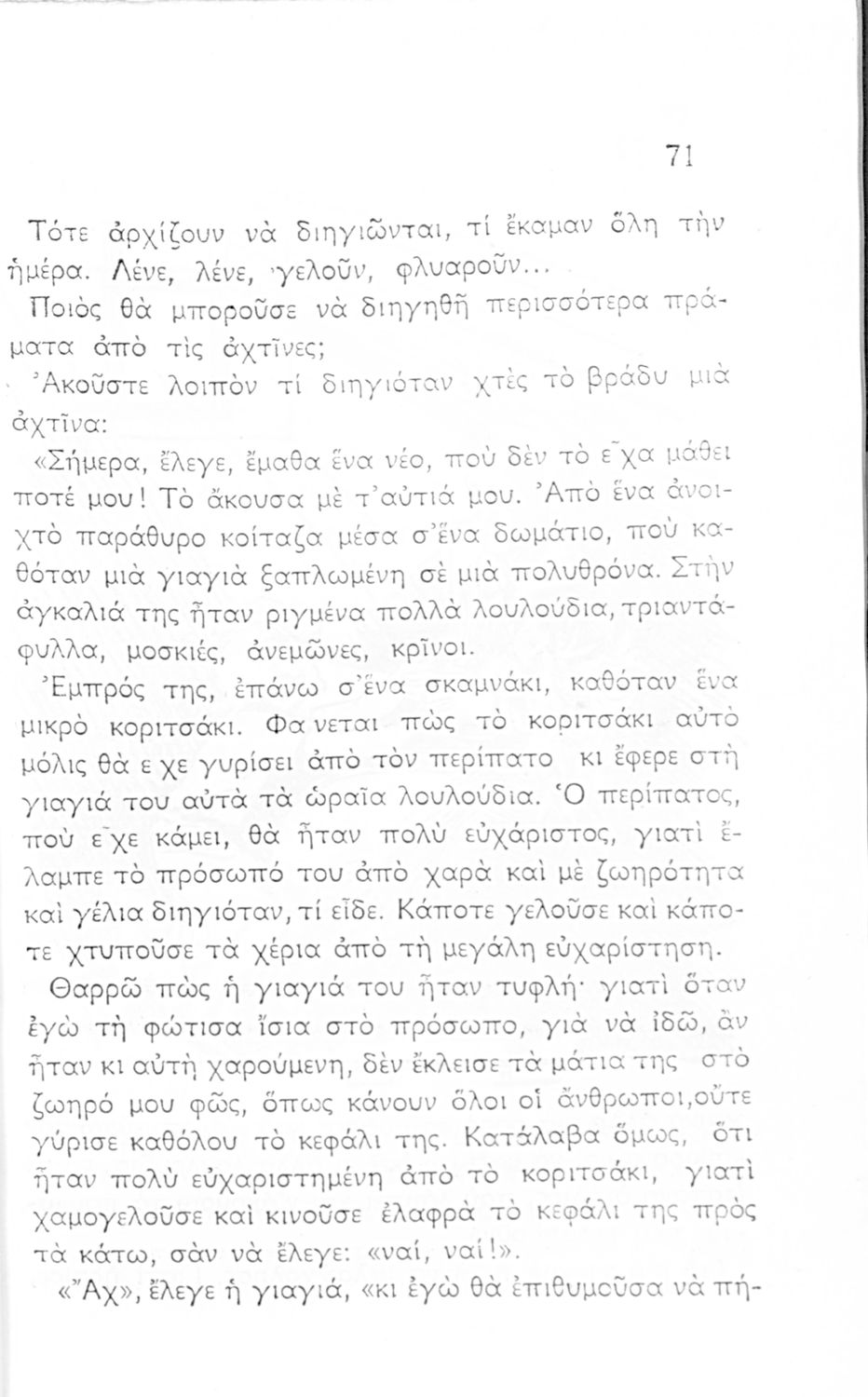 Αναγνωστικό Δ΄ Δημοτικού που περιλαμβάνει θέματα από την θρησκευτική, οικογενειακή και σχολική ζωή του παιδιού, την ελληνική μυθολογία και ιστορία και τη ζωή των ζώων.