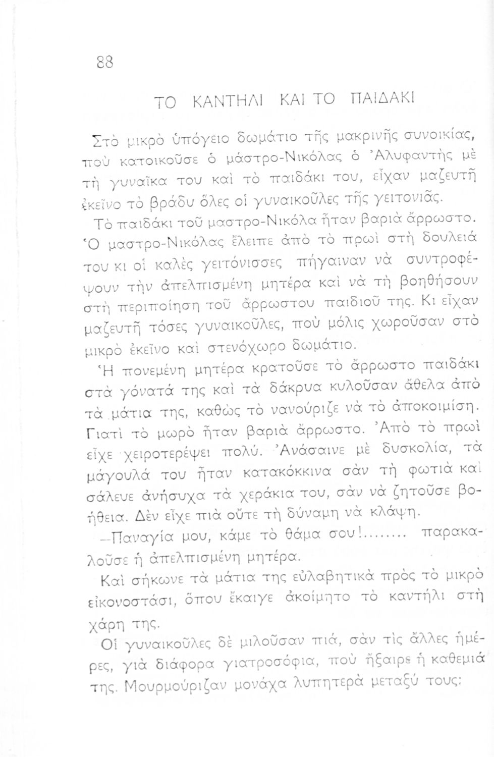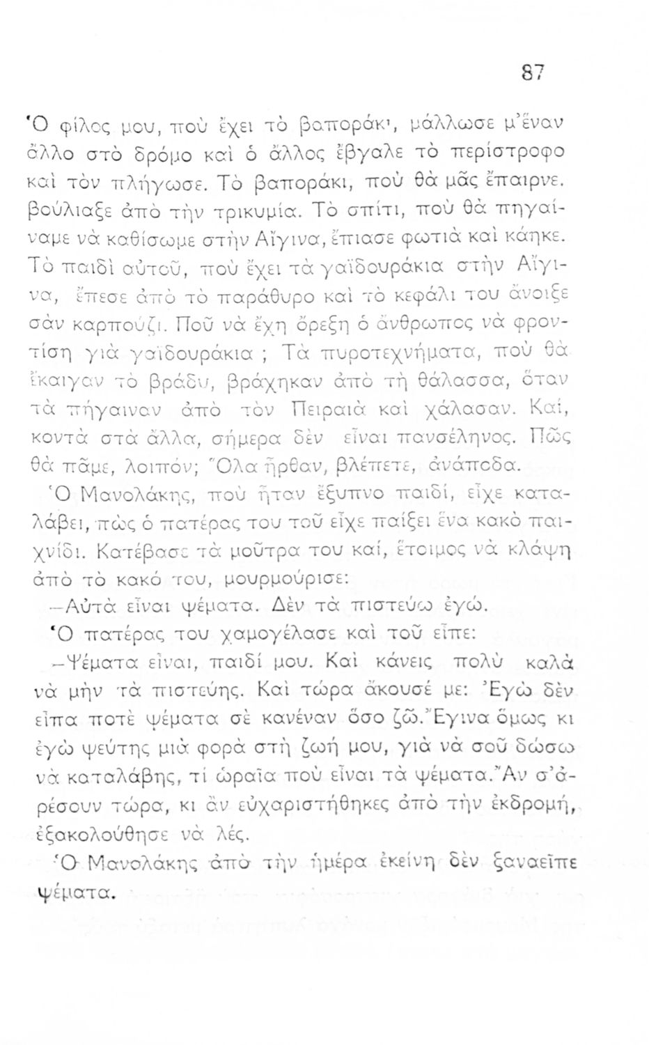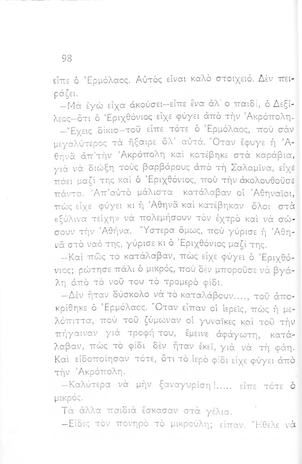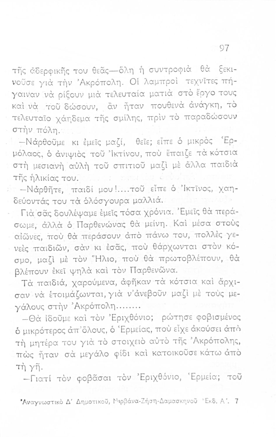 Αναγνωστικό Δ΄ Δημοτικού που περιλαμβάνει θέματα από την θρησκευτική, οικογενειακή και σχολική ζωή του παιδιού, την ελληνική μυθολογία και ιστορία και τη ζωή των ζώων.