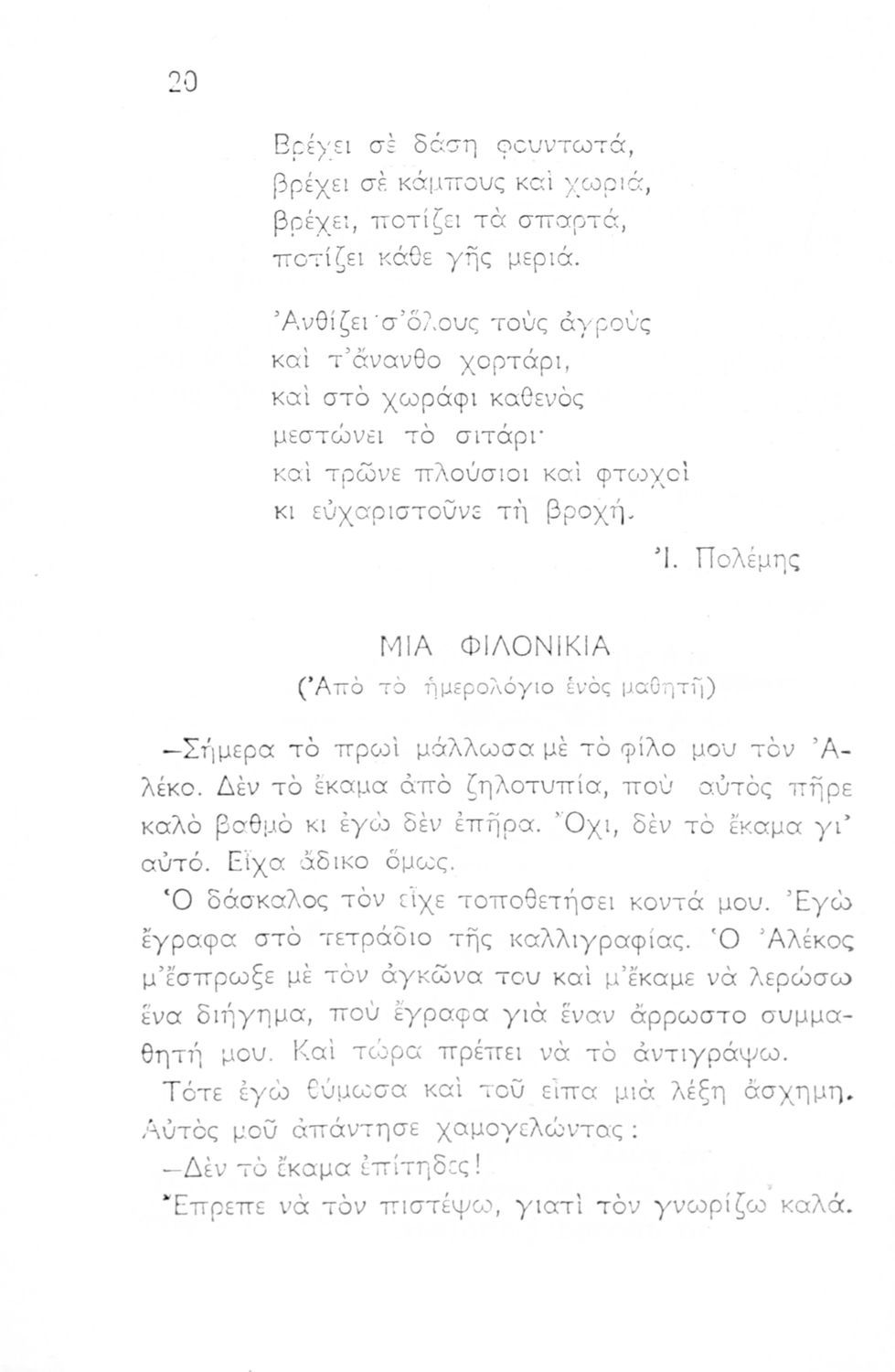 Αναγνωστικό για τους μαθητές της Δ΄ Δημοτικού που περιλαμβάνει ποιήματα και πεζά με θέματα από την καθημερινή ζωή των Ελλήνων, τη φύση, την ιστορία και την θρησκεία τους.