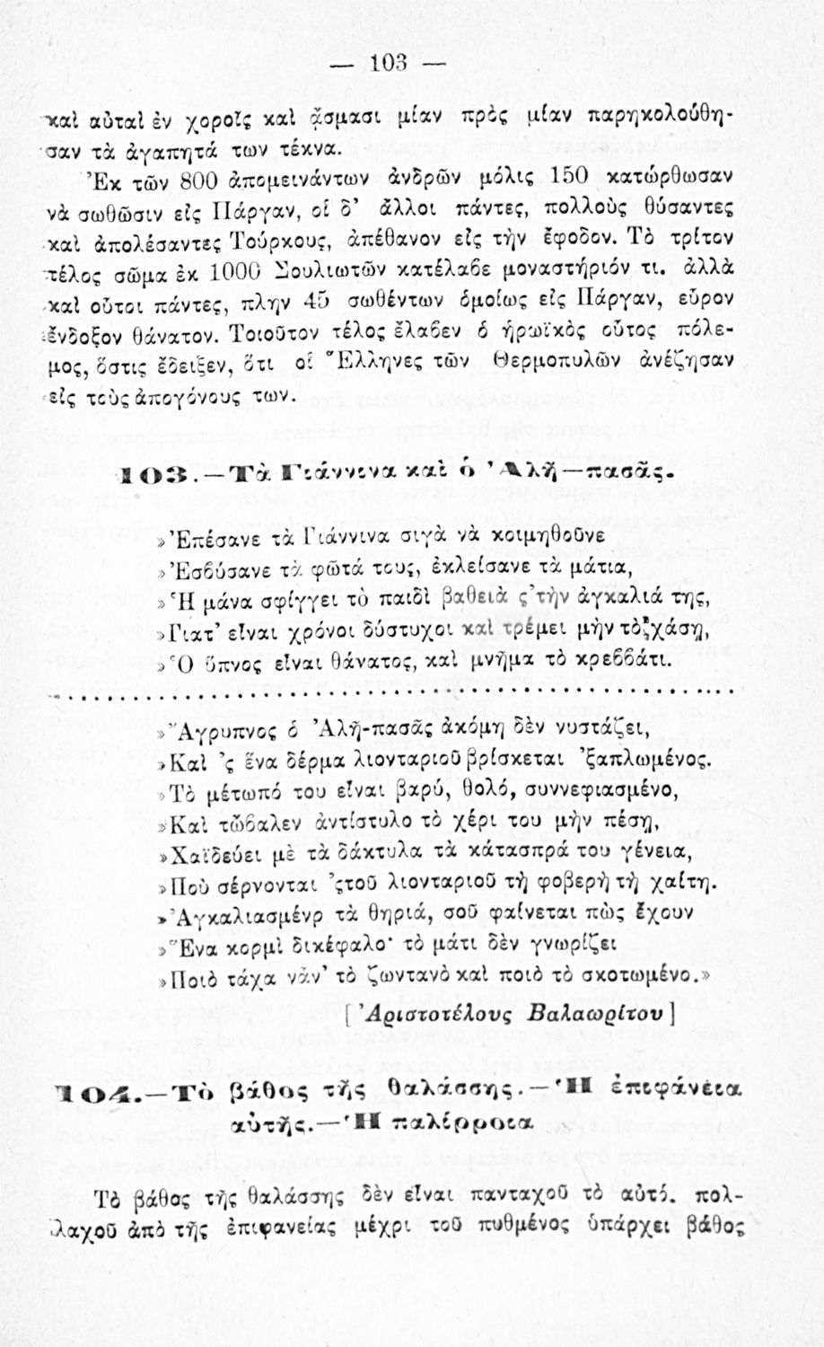 Βαθμίδα εκπαίδευσης: Πρωτοβάθμια Τάξη: Δ' Δημοτικού Μάθημα: Νέα Ελληνικά Γλώσσα: Καθαρεύουσα Παρουσίαση περιεχομένου: Αναγνωστικό Δ΄ Δημοτικού που περιλαμβάνει ποιήματα και πεζά που καλύπτουν το σύνολο των διδασκομένων μαθημάτων από τα Θρησκευτικά και την Ιστορία, ως την Υγιεινή και την Αγωγή του Πολίτη. |