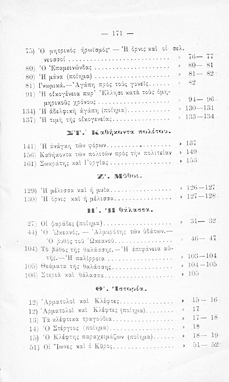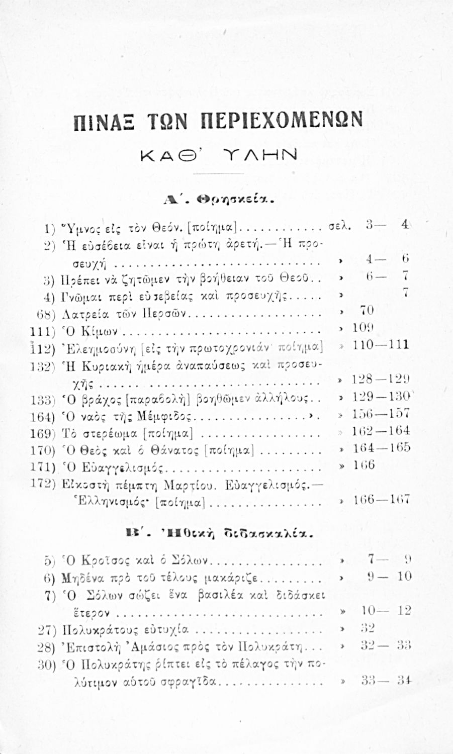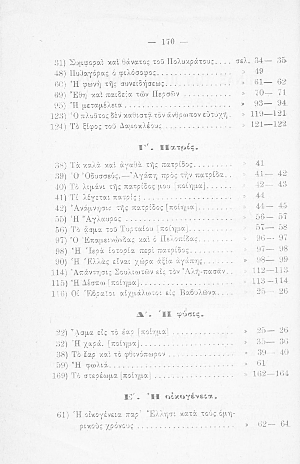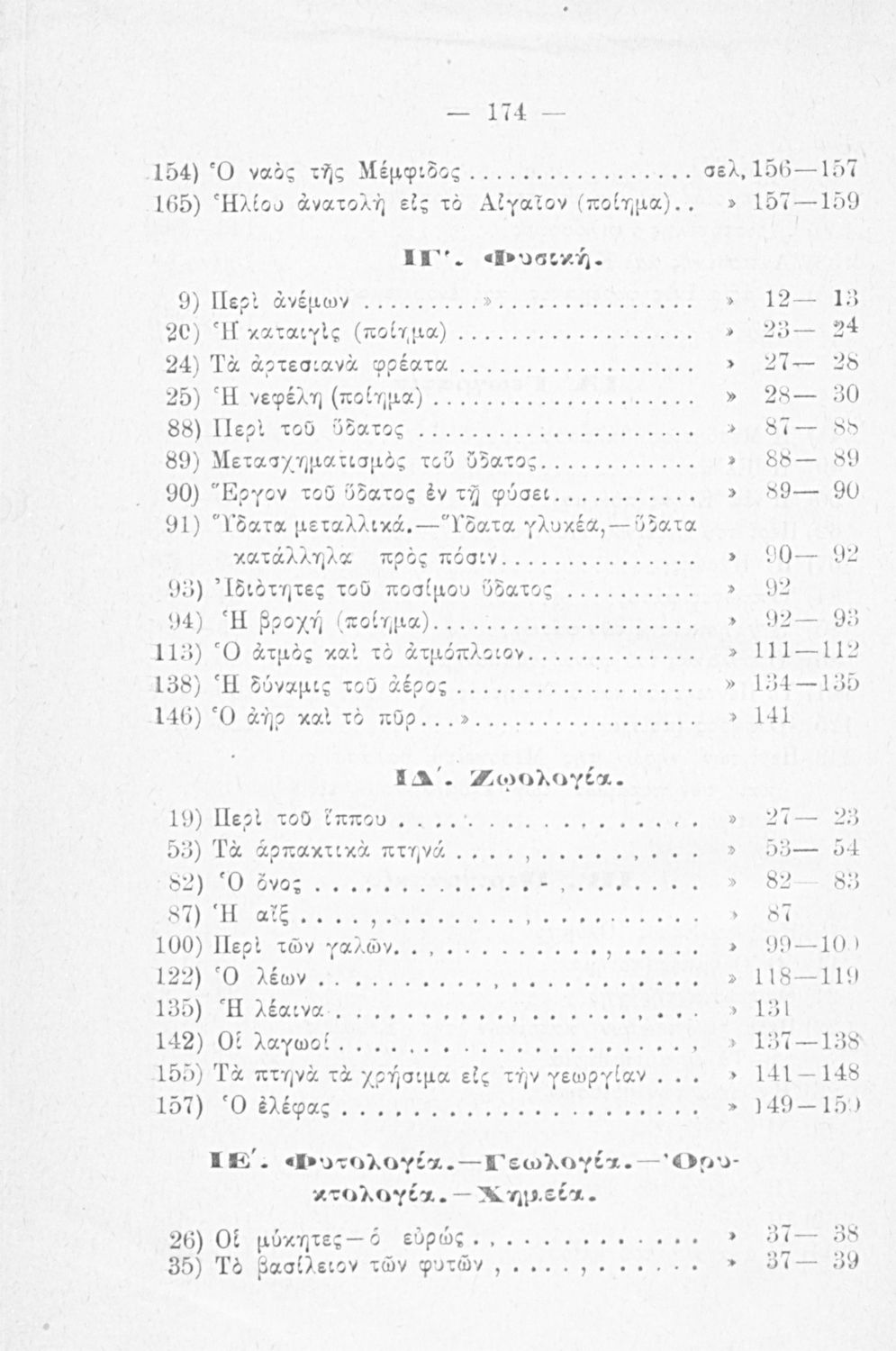 Βαθμίδα εκπαίδευσης: Πρωτοβάθμια Τάξη: Δ' Δημοτικού Μάθημα: Νέα Ελληνικά Γλώσσα: Καθαρεύουσα Παρουσίαση περιεχομένου: Αναγνωστικό Δ΄ Δημοτικού που περιλαμβάνει ποιήματα και πεζά που καλύπτουν το σύνολο των διδασκομένων μαθημάτων από τα Θρησκευτικά και την Ιστορία, ως την Υγιεινή και την Αγωγή του Πολίτη. |