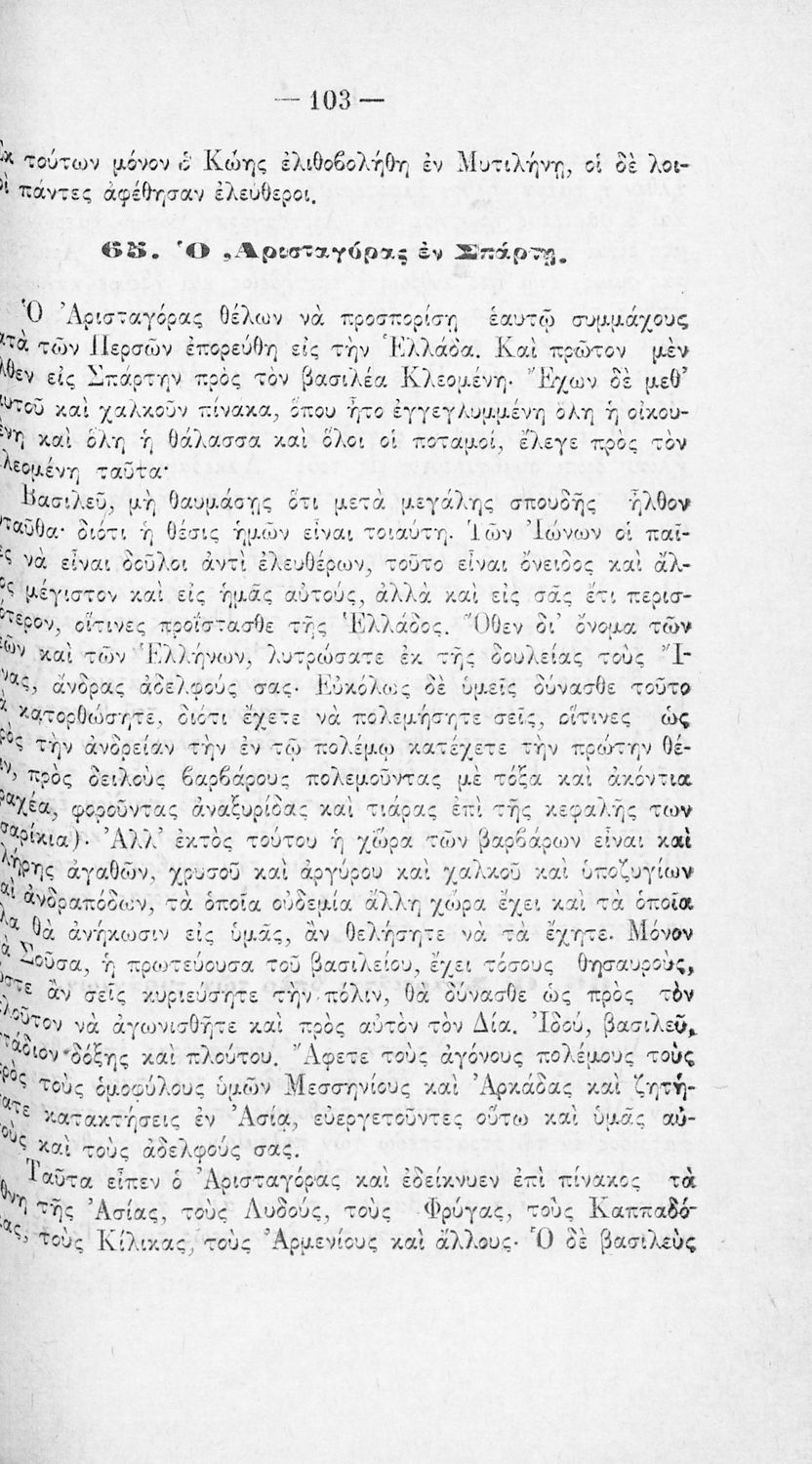 Αναγνωστικό Δ΄ Δημοτικού που περιλαμβάνει διηγήματα εμπνευσμένα από το έργο του Ηρόδοτου και ποιήματα του Παράσχου, του Αλέξανδρου Σούτσου, του Κάλβου και του Αλ. Τανταλίδη.