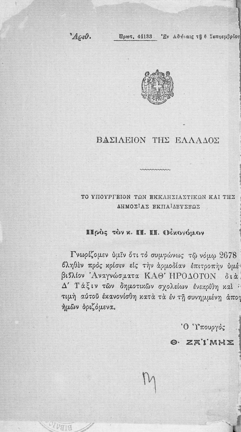 245 0# _aΑναγνώσματα καθ' Ηρόδοτον προς χρήσιν των Δημοτικών Σχολείων αρρένων και θηλέων Τετάρτη τάξις Δημοτικών Σχολείων