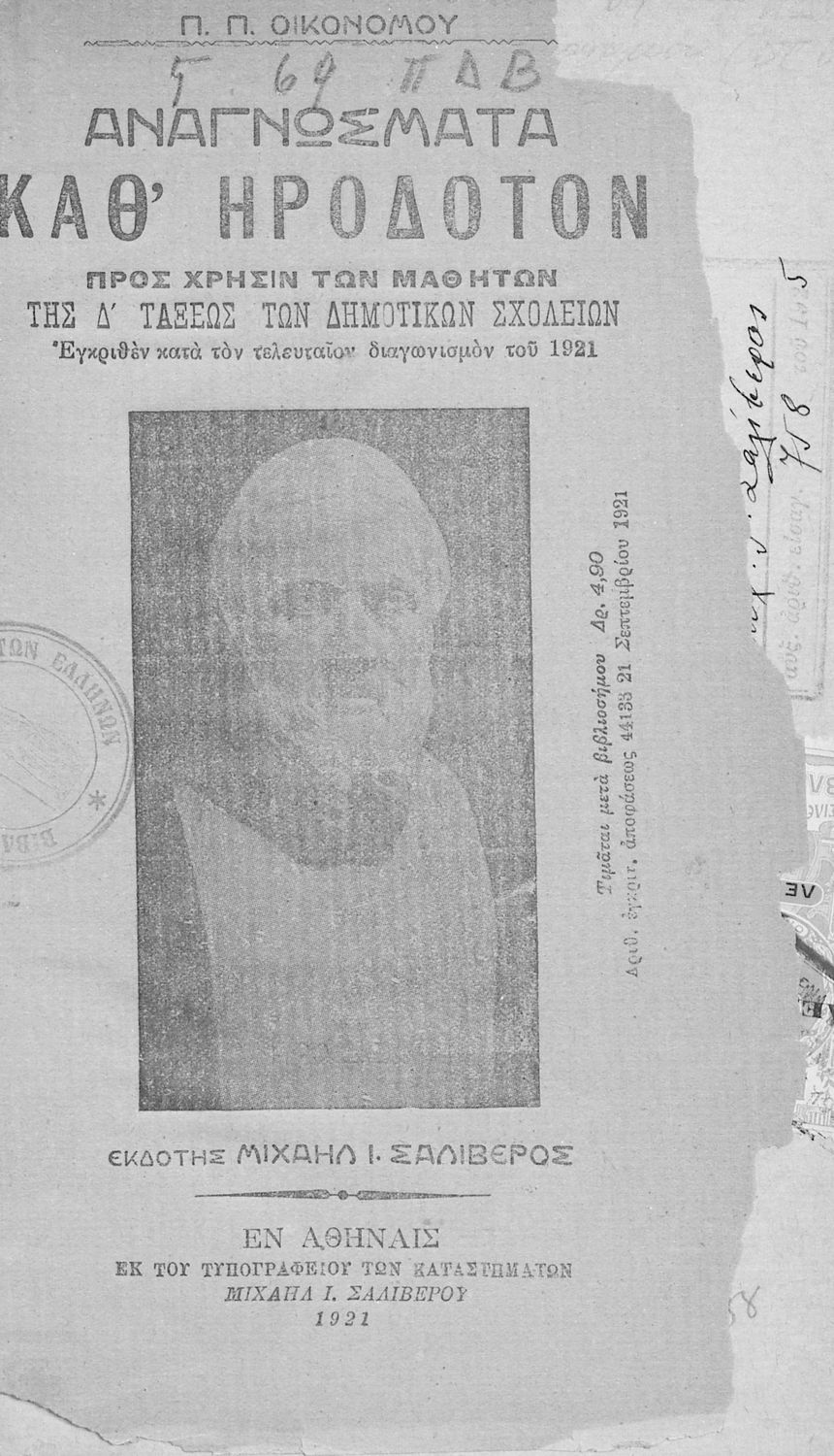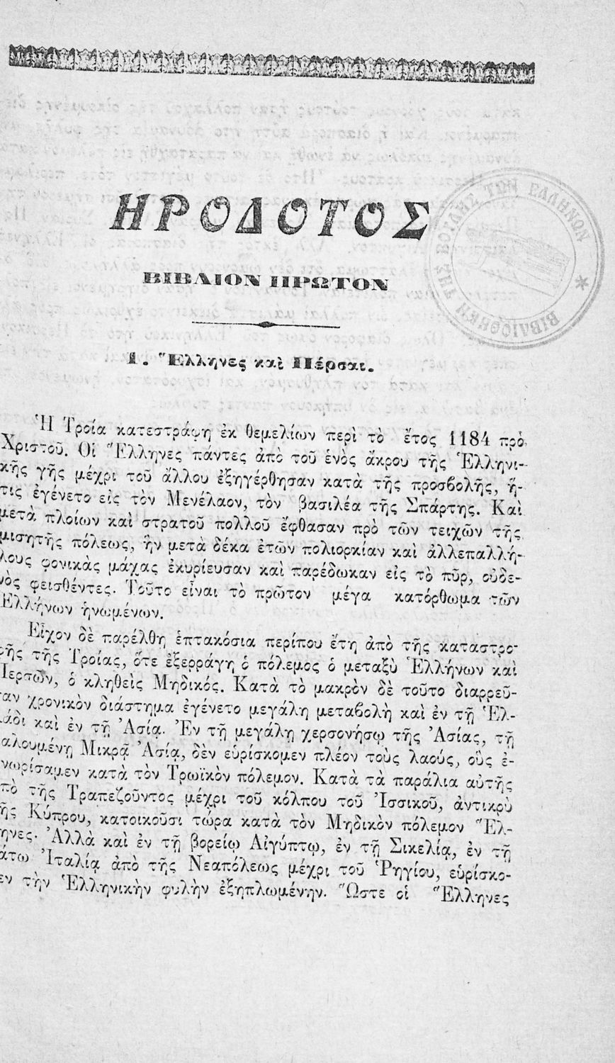 Τίτλος: Αναγνώσματα καθ' Ηρόδοτον προς χρήσιν των Δημοτικών Σχολείων αρρένων και θηλέων Τετάρτη τάξις Δημοτικών Σχολείων