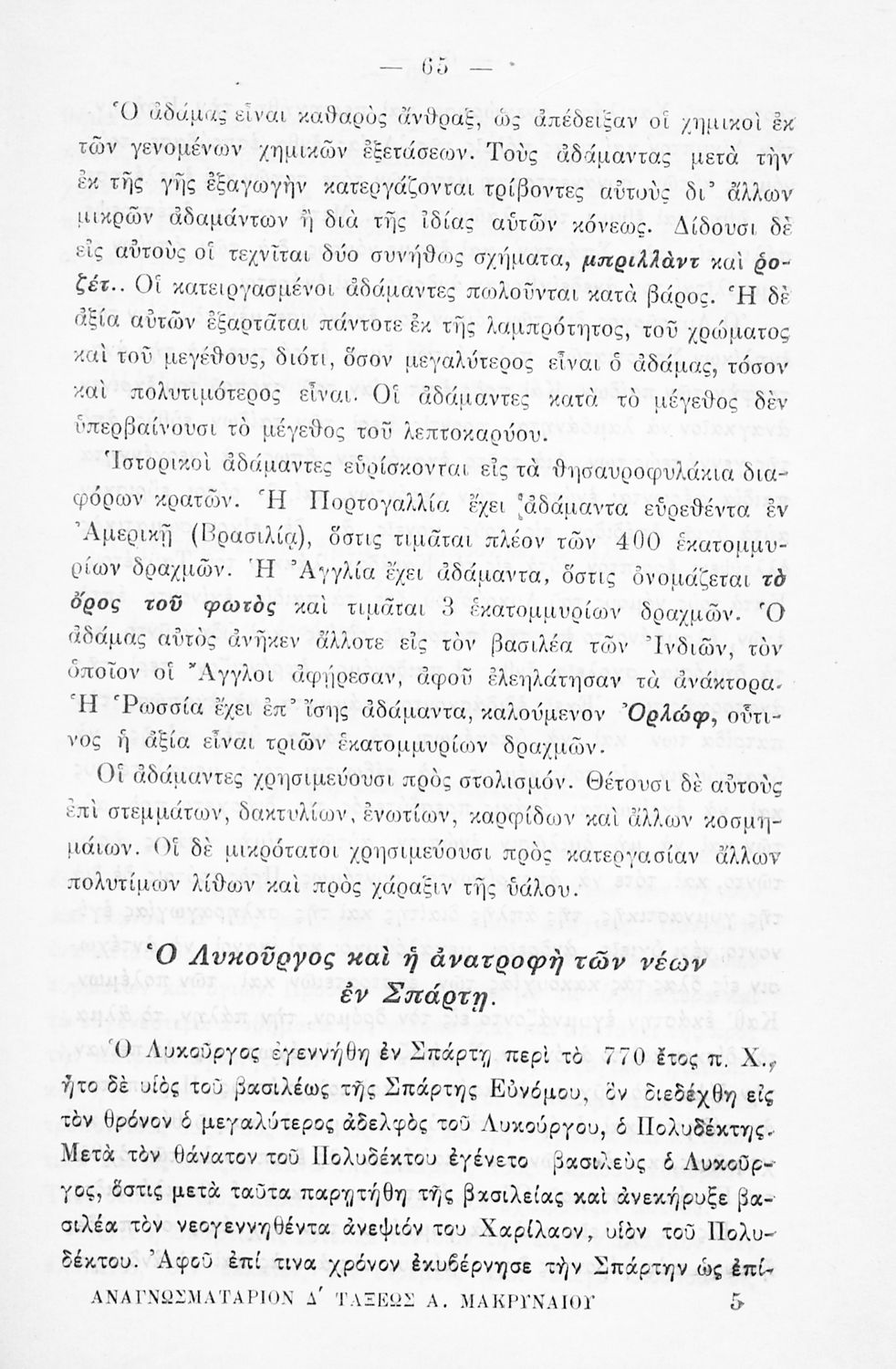 Κωδικός αναγνώρισης: 03-20561345 Τίτλος: Ελληνικόν αναγνωσματάριον δια τη Δ΄ τάξιν των Δημοτικών Σχολείων αμφοτέρων των φύλων Συγγραφέας: Αλέξανδρος Γ. Μακρυναίος Μέγεθος και υπόστρωμα: Σχολικό εγχειρίδιο, 175 σελίδες. Σκίτσα (ασπρόμαυρα). |