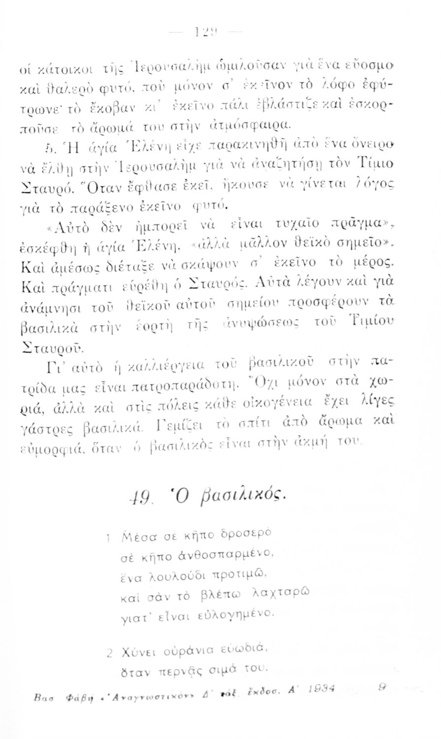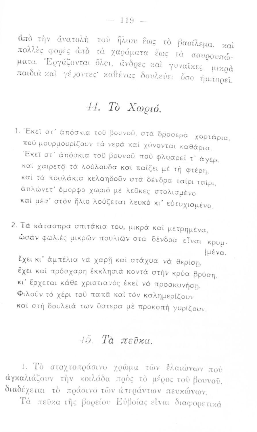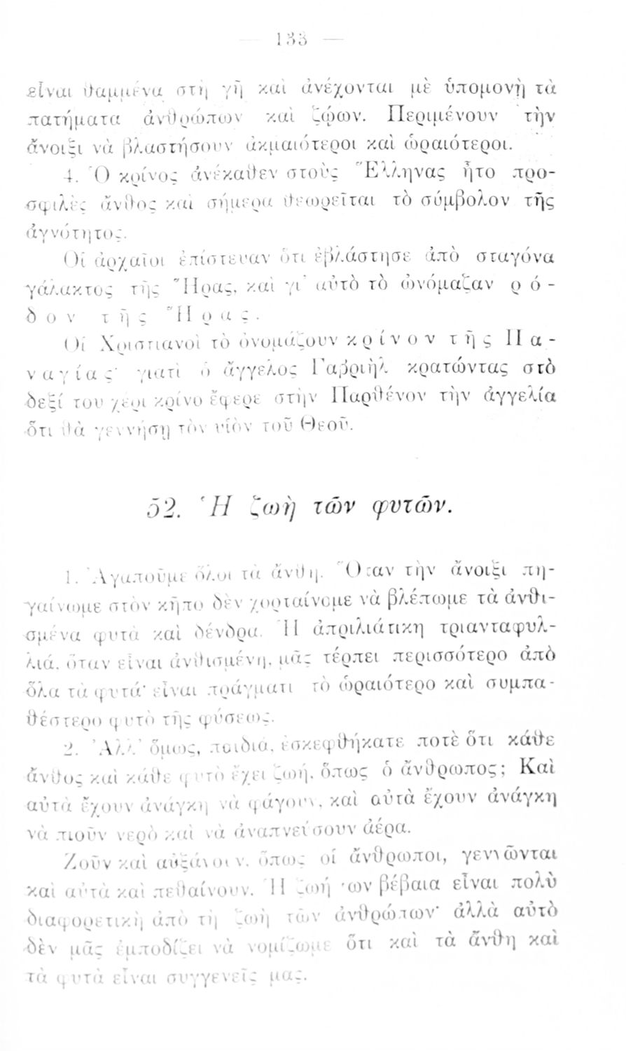 Αναγνωστικό Δ΄ Δημοτικού που περιλαμβάνει ποιήματα και πεζά με θέματα από την οικογενειακή, κοινωνική, πολιτική και ιδιωτική ζωή των Ελλήνων, τη φύση, την ιστορία και την θρησκεία τους.