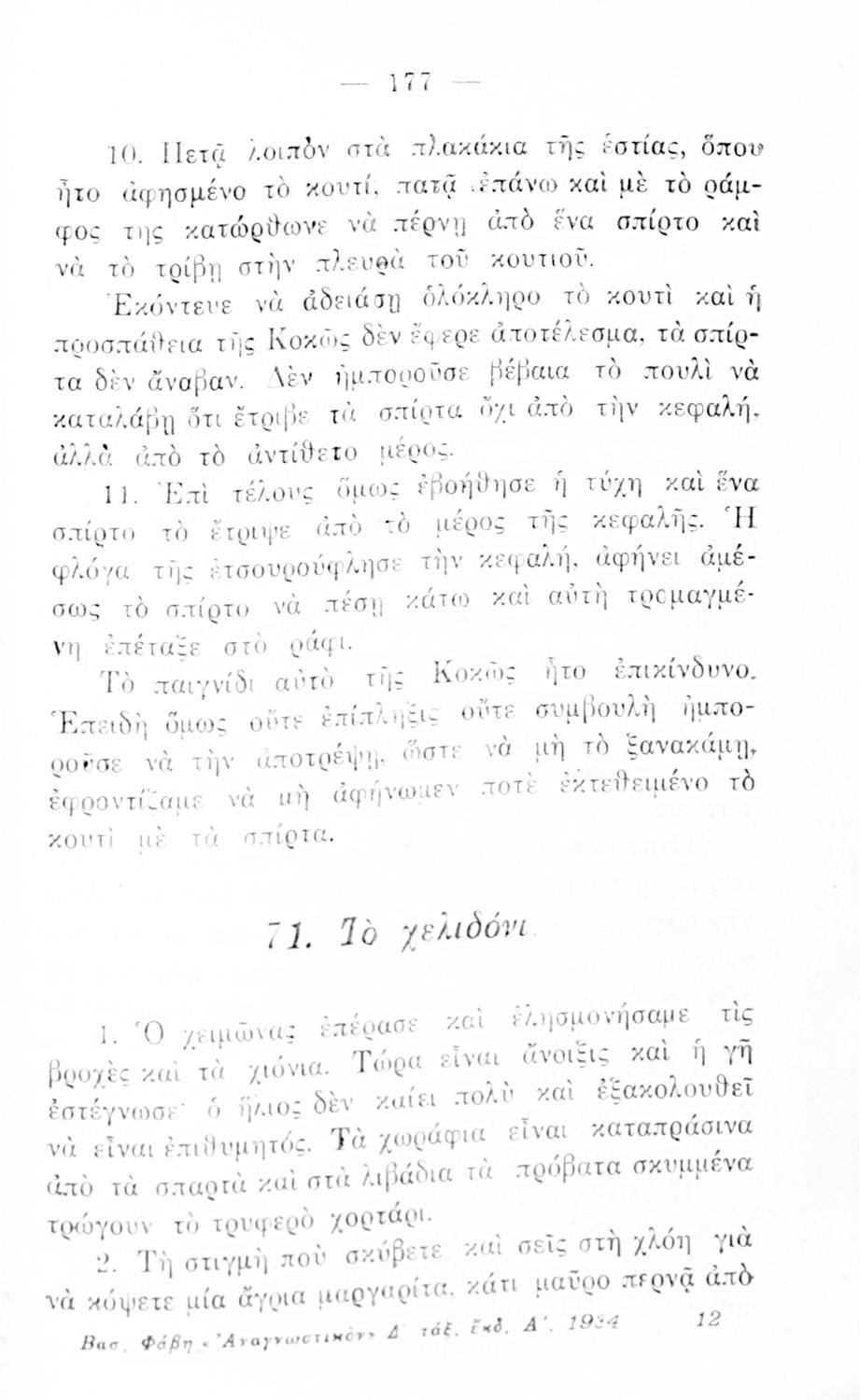 Αναγνωστικό Δ΄ Δημοτικού που περιλαμβάνει ποιήματα και πεζά με θέματα από την οικογενειακή, κοινωνική, πολιτική και ιδιωτική ζωή των Ελλήνων, τη φύση, την ιστορία και την θρησκεία τους.