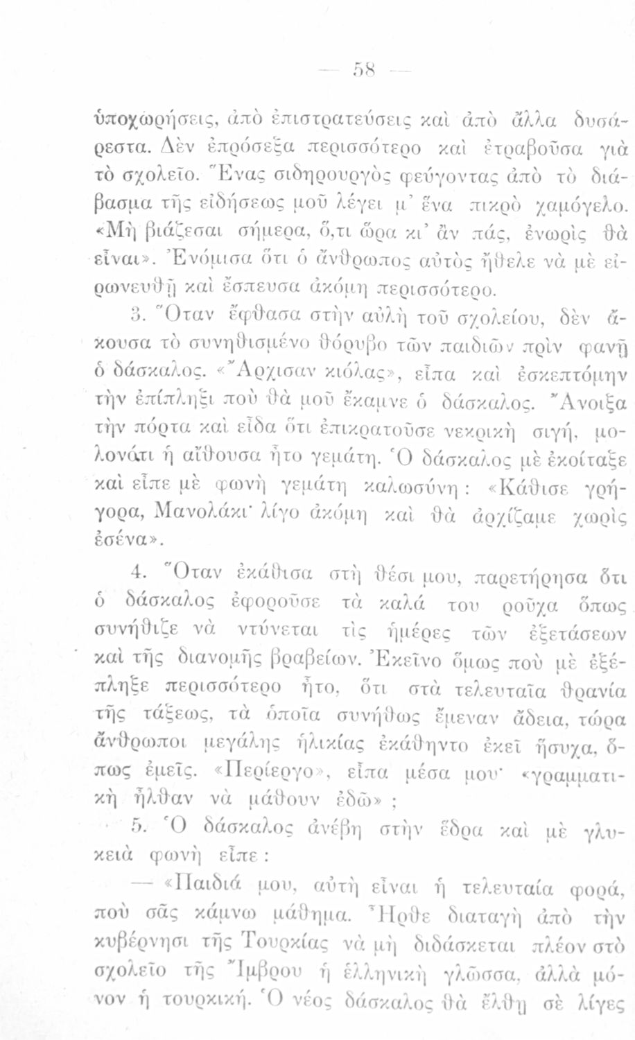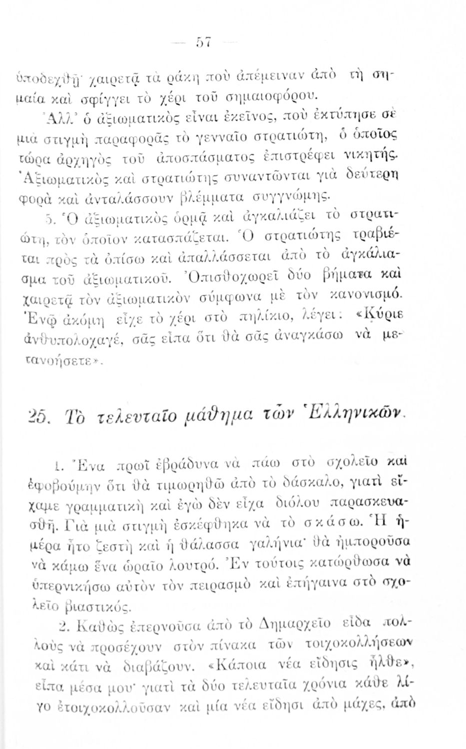 Αναγνωστικό Δ΄ Δημοτικού που περιλαμβάνει ποιήματα και πεζά με θέματα από την οικογενειακή, κοινωνική, πολιτική και ιδιωτική ζωή των Ελλήνων, τη φύση, την ιστορία και την θρησκεία τους.
