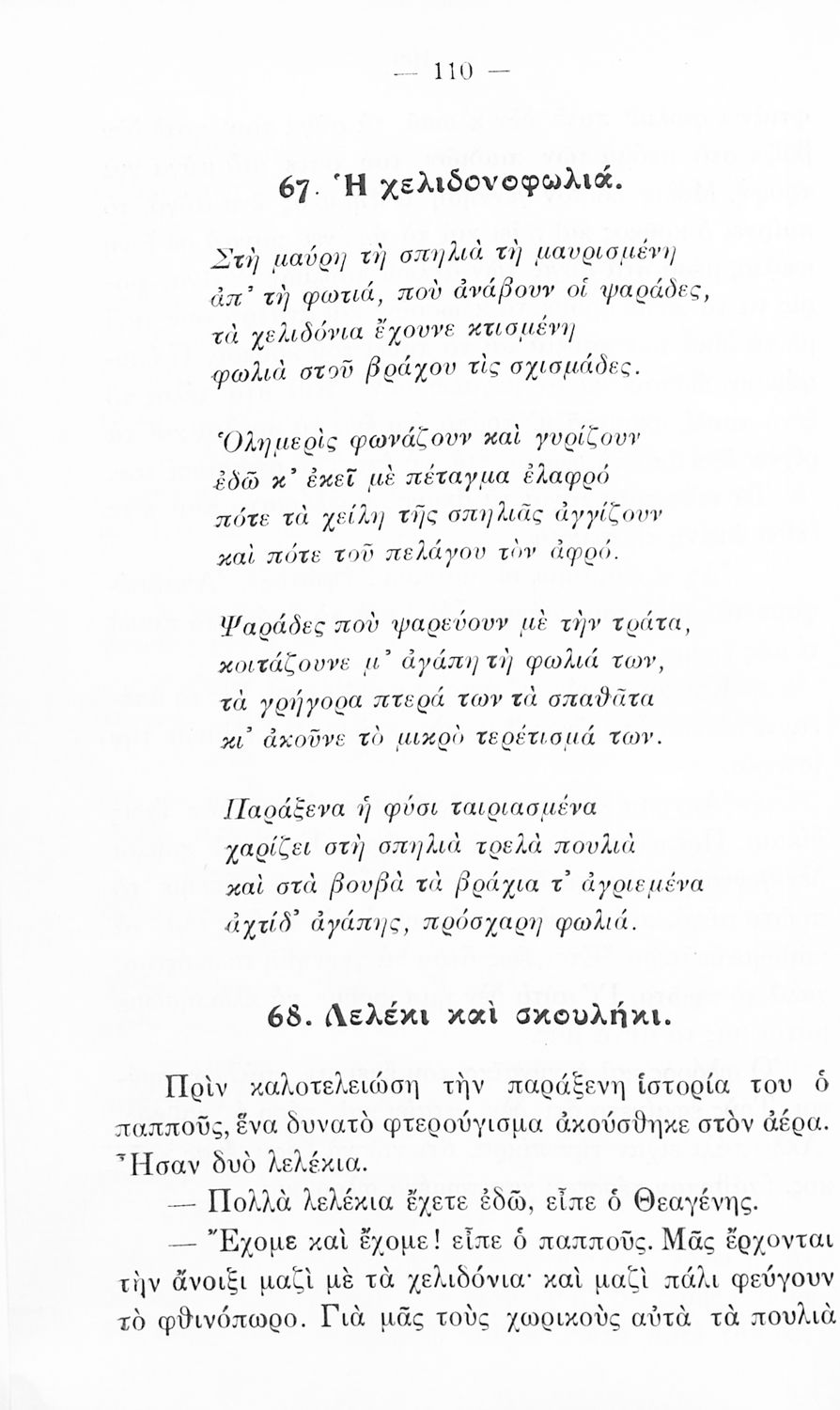 Αναγνωστικό για την Δ΄ Δημοτικού. Περιλαμβάνει πεζά κείμενα από την αρχαία εποχή με θέματα κυρίως για την φύση. Από το βιβλίο λείπουν οι πρώτες και οι τελευταίες σελίδες.