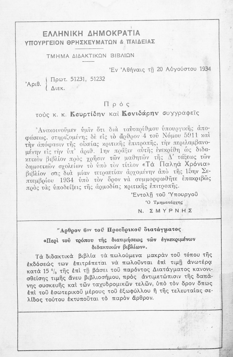 Υπουργική απόφαση / Σύμβαση: 51231/51232/20-8-1934
