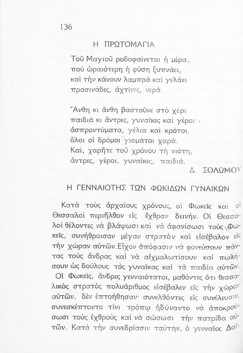 Αναγνωστικό Ε΄ Δημοτικού που περιλαμβάνει ποιήματα και πεζά που αντλούν τα θέματά τους από την αρχαία και σύγχρονη ελληνική ιστορία, την ελληνική μυθολογία, τη βυζαντινή ιστορία, τη θρησκεία και την καθημερινή