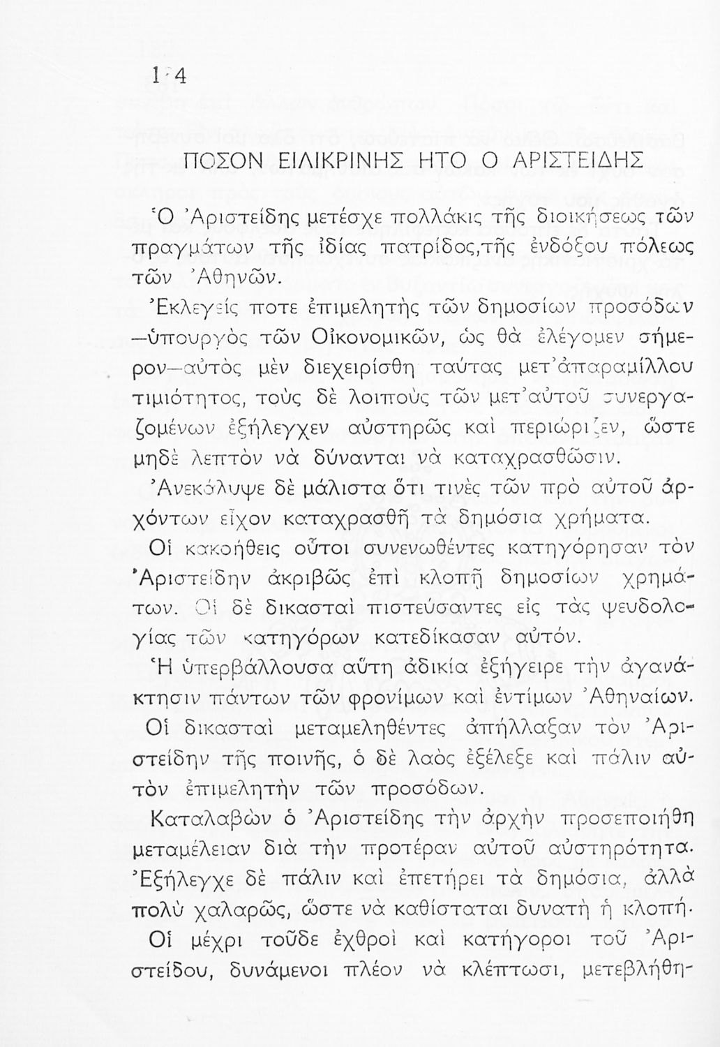 Αναγνωστικό Ε΄ Δημοτικού που περιλαμβάνει ποιήματα και πεζά που αντλούν τα θέματά τους από την αρχαία και σύγχρονη ελληνική ιστορία, την ελληνική μυθολογία, τη βυζαντινή ιστορία, τη θρησκεία και την καθημερινή
