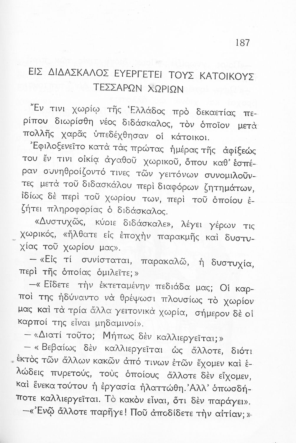 Αναγνωστικό της Ε΄ Δημοτικού, το οποίο περιλαμβάνει κείμενα, ποιήματα και πεζά, από την καθημερινότητα της ελληνικής ζωής, τη ζωή στην ύπαιθρο, την εθνική και κοινωνική ζωή, τα ζώα και τα φυτά. Τα κείμενα εκτός από τη γλωσσική διδασκαλία αποσκοπούν και στην ηθική καλλιέργεια των μαθητών.