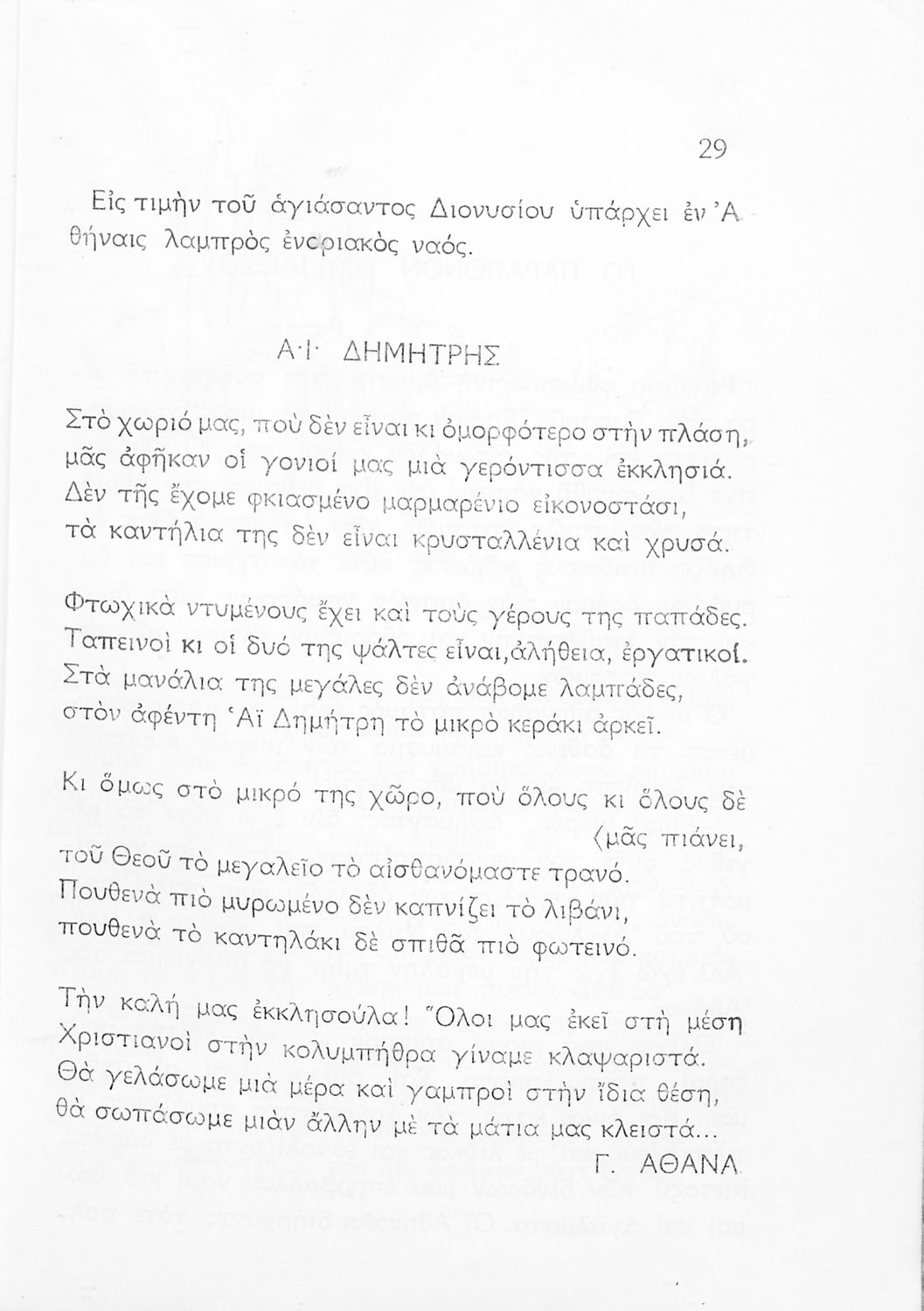 520 ## _aΑναγνωστικό της Ε΄ Δημοτικού, το οποίο περιλαμβάνει κείμενα, ποιήματα και πεζά, από την καθημερινότητα της ελληνικής ζωής, τη ζωή στην ύπαιθρο, την εθνική και κοινωνική ζωή, τα ζώα και τα φυτά. Τα κείμενα εκτός από τη γλωσσική διδασκαλία αποσκοπούν και στην ηθική καλλιέργεια των μαθητών.