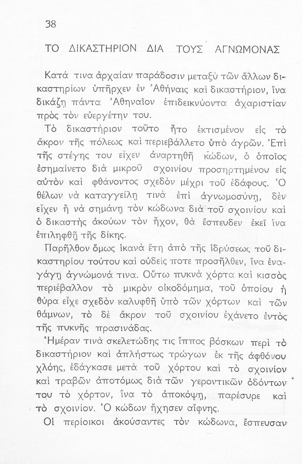 Βαθμίδα εκπαίδευσης: Πρωτοβάθμια Τάξη: Ε' Δημοτικού Μάθημα: Νέα Ελληνικά Γλώσσα: Καθαρεύουσα Παρουσίαση περιεχομένου: Αναγνωστικό της Ε΄ Δημοτικού, το οποίο περιλαμβάνει κείμενα, ποιήματα και πεζά, από την καθημερινότητα της ελληνικής ζωής, τη ζωή στην ύπαιθρο, την εθνική και κοινωνική ζωή, τα ζώα και τα φυτά. Τα κείμενα εκτός από τη γλωσσική διδασκαλία αποσκοπούν και στην ηθική καλλιέργεια των μαθητών. |