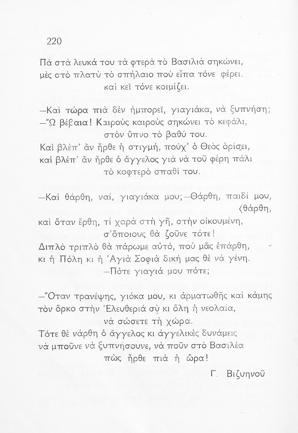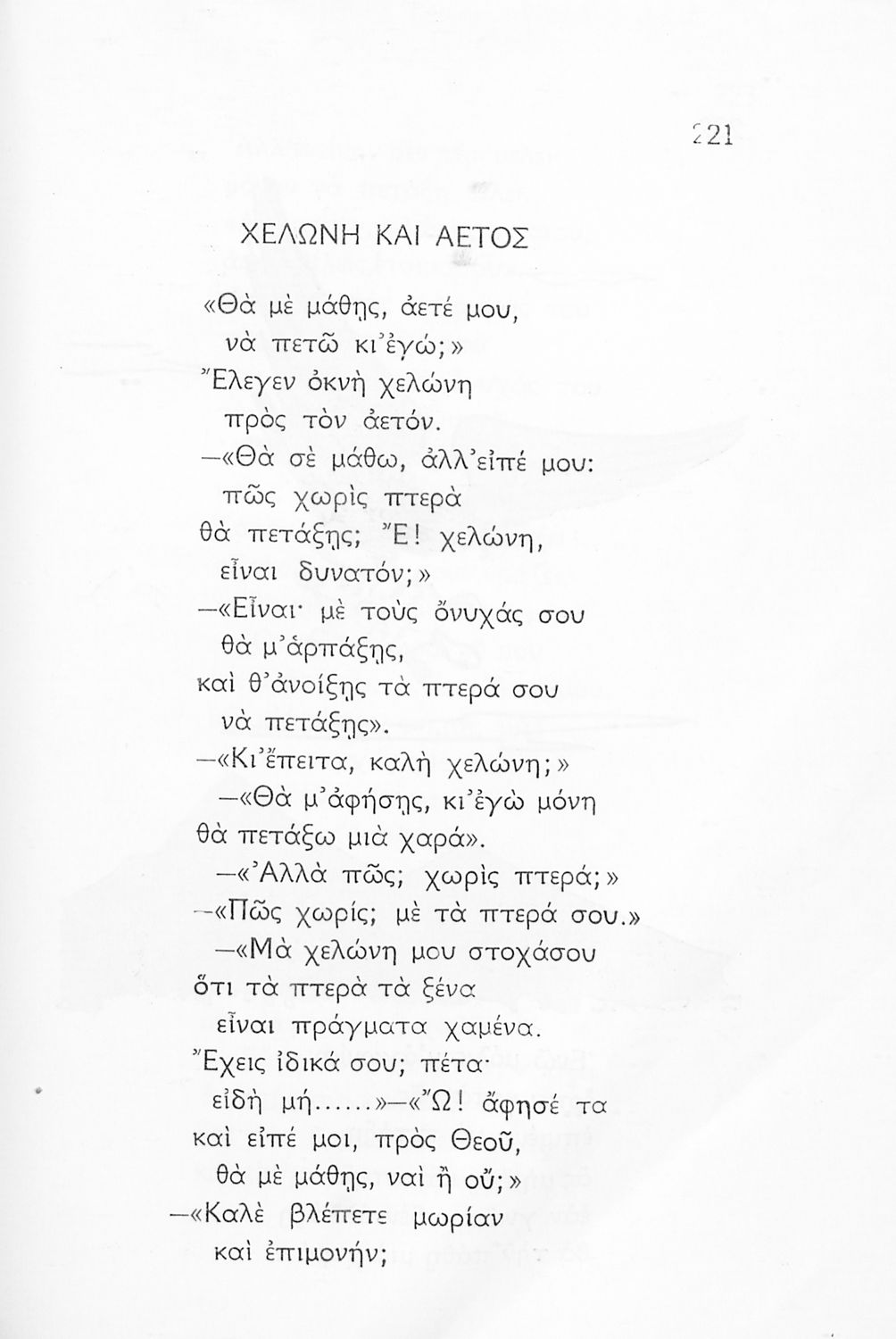 520 ## _aΑναγνωστικό της Ε΄ Δημοτικού, το οποίο περιλαμβάνει κείμενα, ποιήματα και πεζά, από την καθημερινότητα της ελληνικής ζωής, τη ζωή στην ύπαιθρο, την εθνική και κοινωνική ζωή, τα ζώα και τα φυτά. Τα κείμενα εκτός από τη γλωσσική διδασκαλία αποσκοπούν και στην ηθική καλλιέργεια των μαθητών.