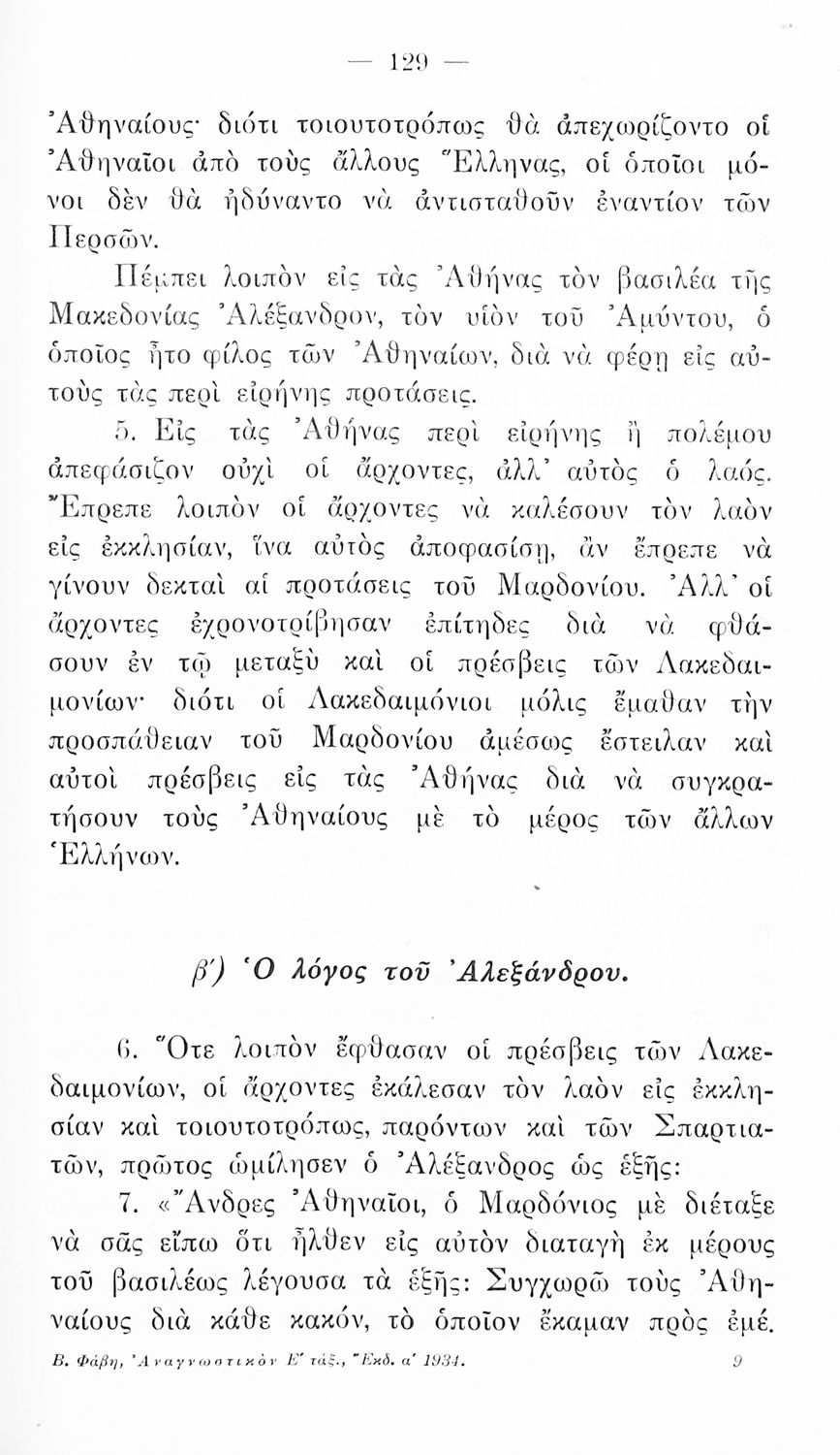 Αναγνωστικό Ε' Δημοτικού που εξιστορεί τη ζωή και το έργο του Μ. Αλεξάνδρου. Προοριζόταν, όπως αναφέρει η έκθεση των κριτών, να εμπνεύσει "φρονήματα υψηλά και γενναία και να υποθάλψη το συναίσθημα της ...