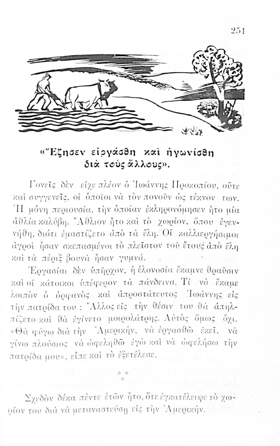 Αναγνωστικό Ε΄ Δημοτικού που περιλαμβάνει πεζογραφήματα εμπνευσμένα από την ελληνική φύση, την αγροτική ζωή και από το τρίπτυχο "Πατρίς- θρησκεία- οικογένεια".