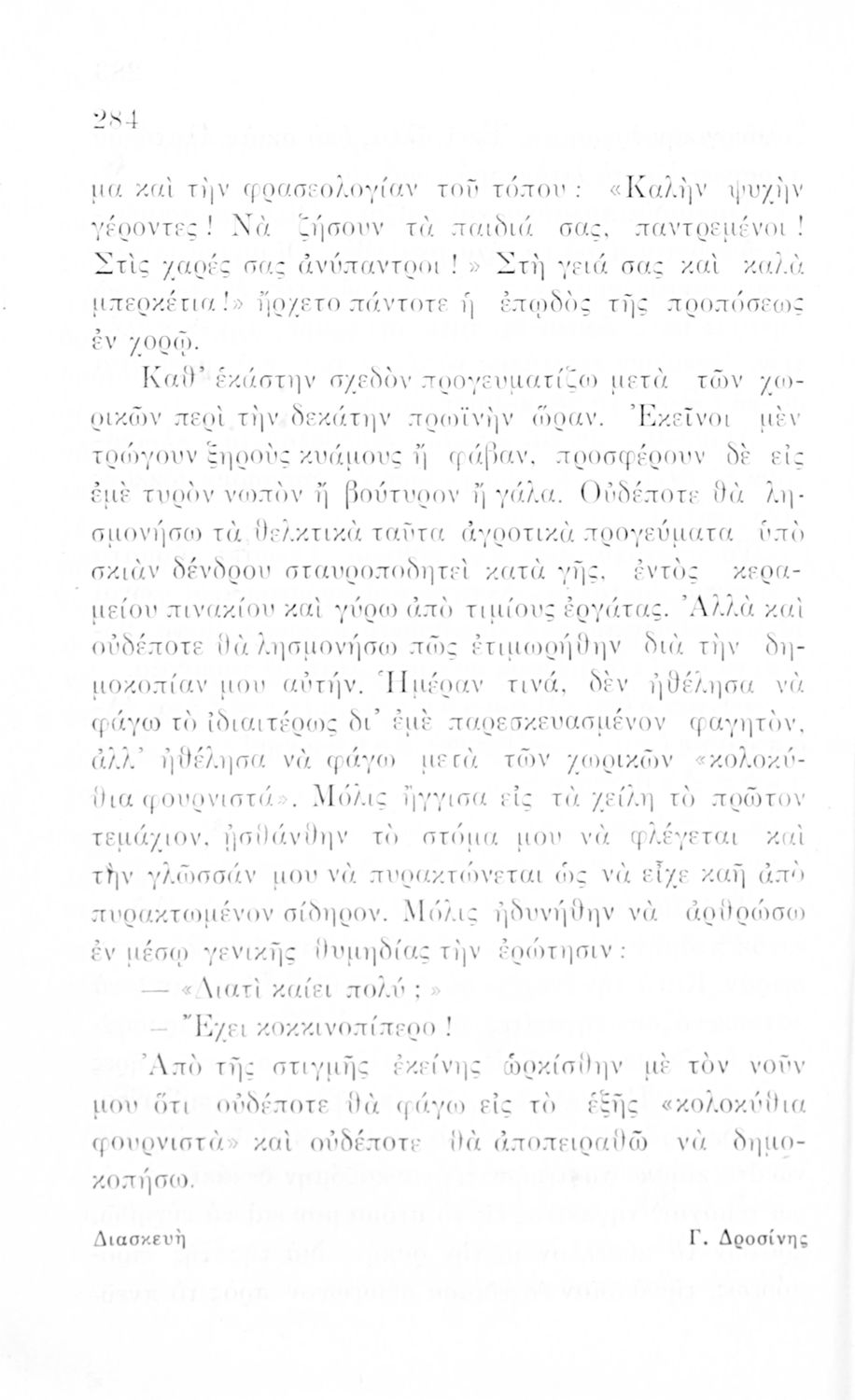 Αναγνωστικό Ε΄ Δημοτικού που περιλαμβάνει πεζογραφήματα εμπνευσμένα από την ελληνική φύση, την αγροτική ζωή και από το τρίπτυχο "Πατρίς- θρησκεία- οικογένεια".