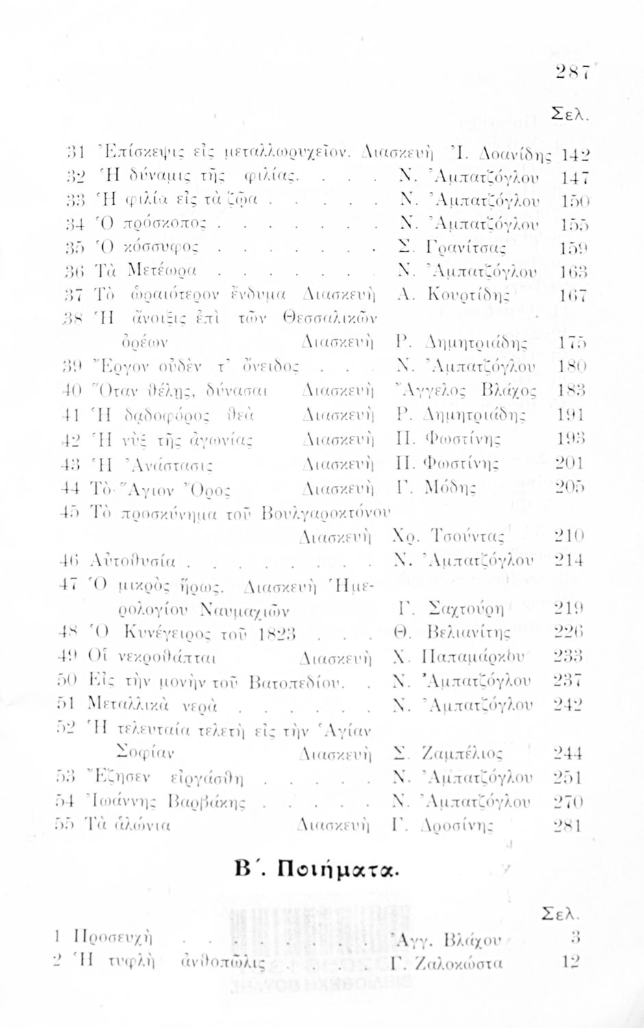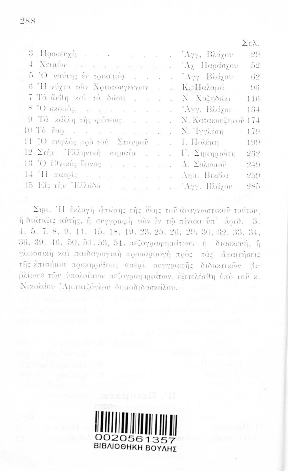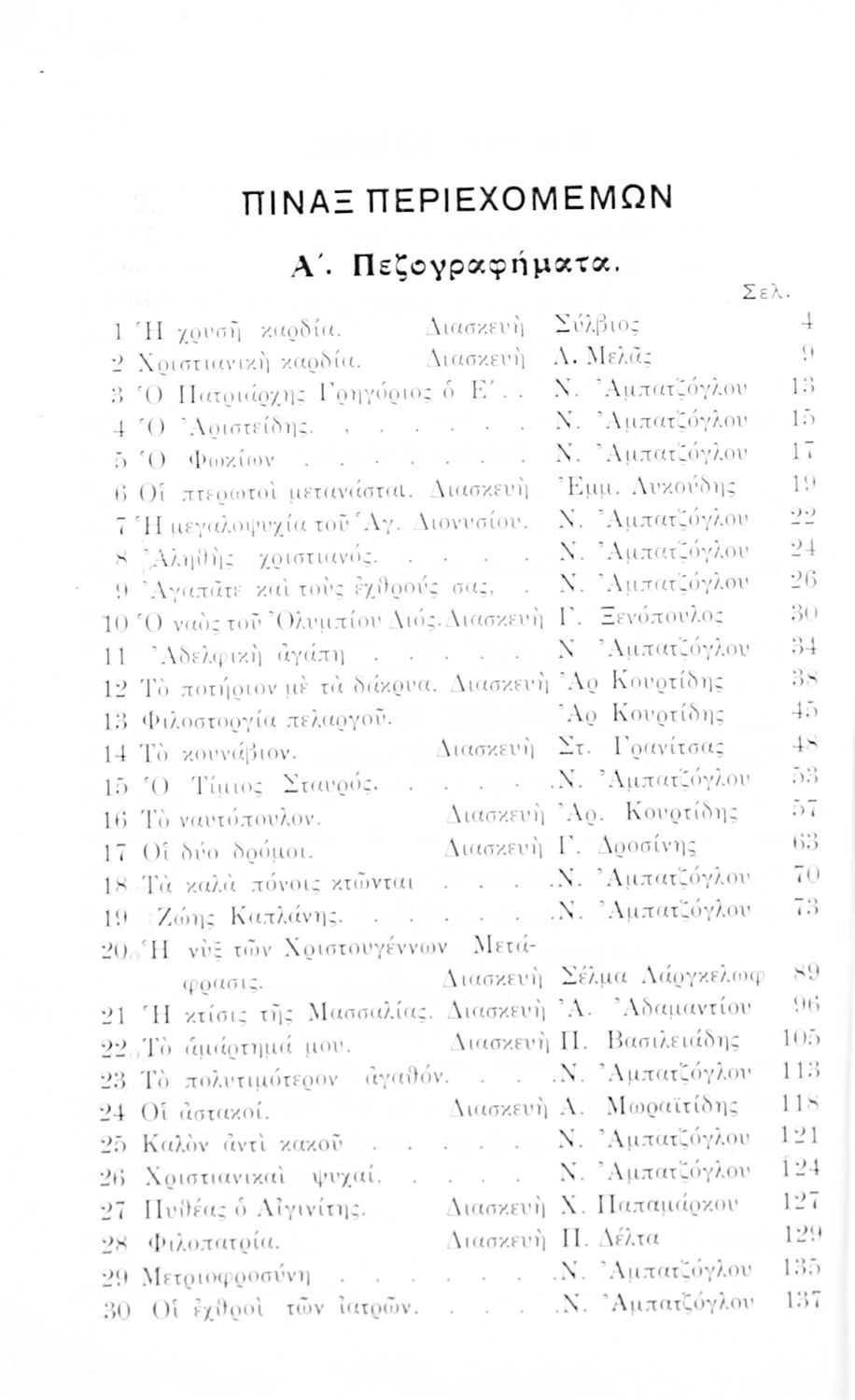Αναγνωστικό Δ' Δημοτικού που περιέχει πεζά και κείμενα εμπνευσμένα από ιστορικά γεγονότα, τη θρησκευτική και κοινωνική ζωή και τη φύση. Ο συγγραφέας ήταν δάσκαλος.