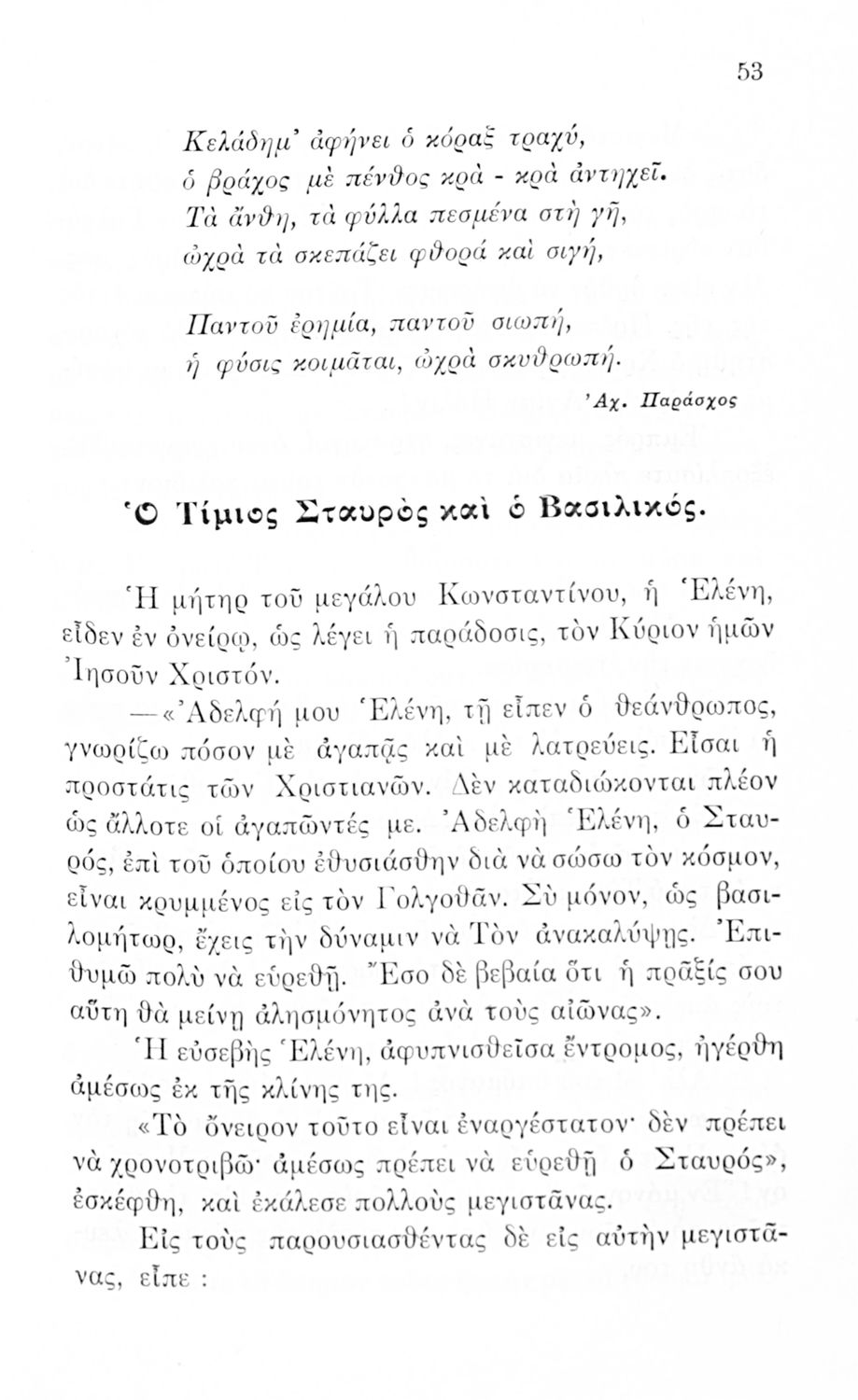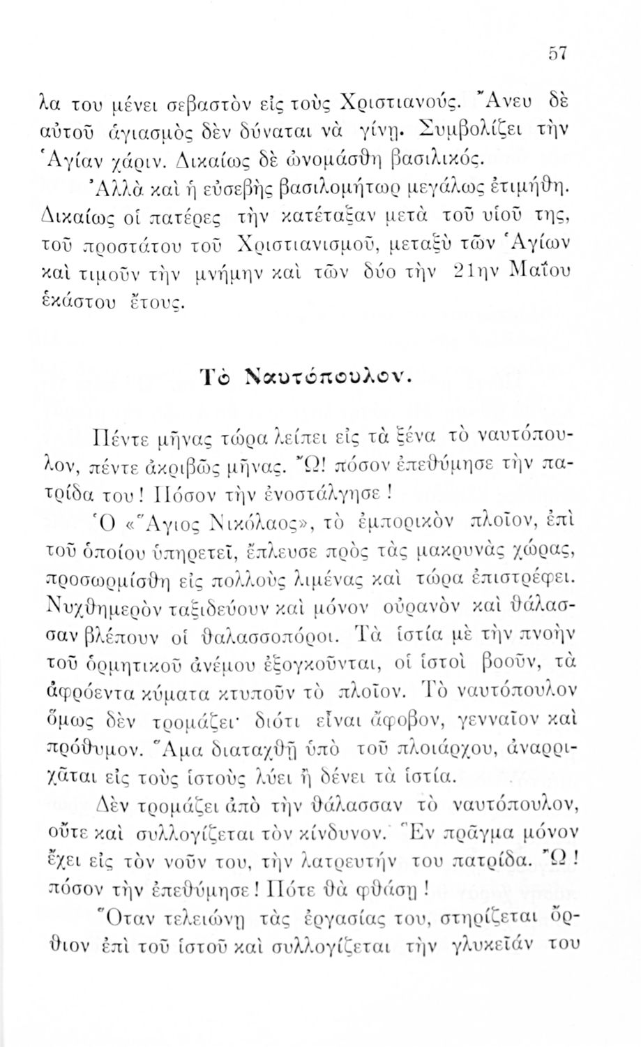Αναγνωστικό Δ' Δημοτικού που περιέχει πεζά και κείμενα εμπνευσμένα από ιστορικά γεγονότα, τη θρησκευτική και κοινωνική ζωή και τη φύση. Ο συγγραφέας ήταν δάσκαλος.