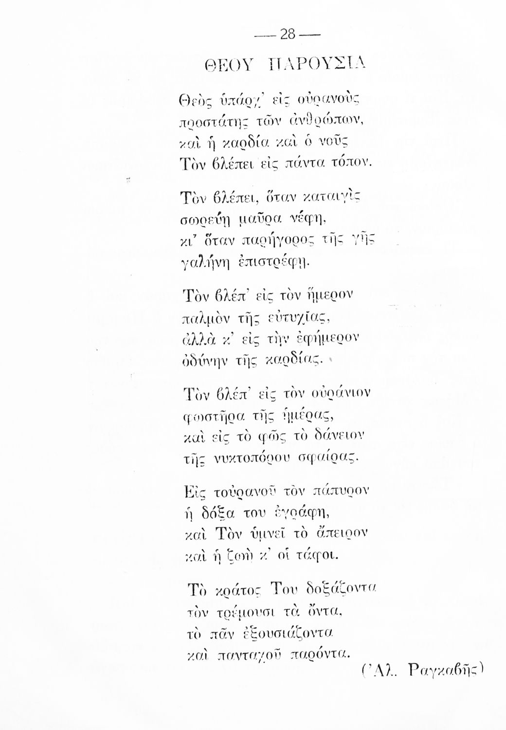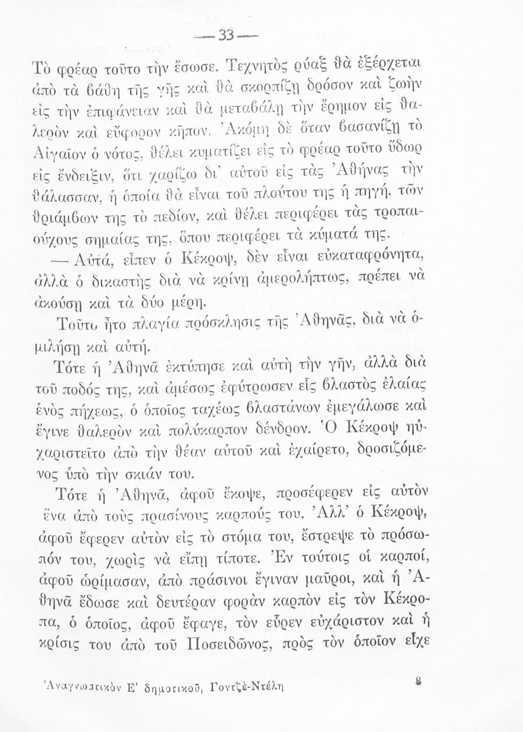 Βαθμίδα εκπαίδευσης: Πρωτοβάθμια Τάξη: Ε' Δημοτικού Μάθημα: Νέα Ελληνικά Γλώσσα: Απλή καθαρεύουσα Παρουσίαση περιεχομένου: Αναγνωστικό για τους μαθητές της Ε΄ Δημοτικού που περιλαμβάνει ποιήματα και πεζά με θέματα από την αρχαία ελληνική και βυζαντινή ιστορία και την κοινωνική και επαγγελματική ζωή των Ελλήνων. |