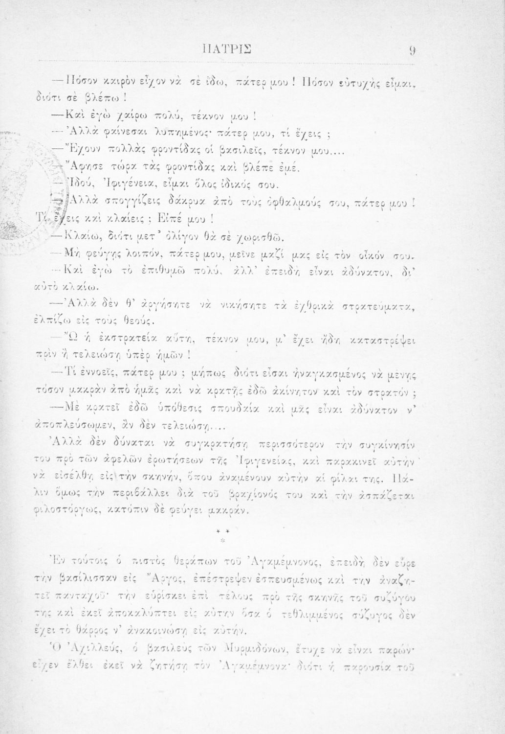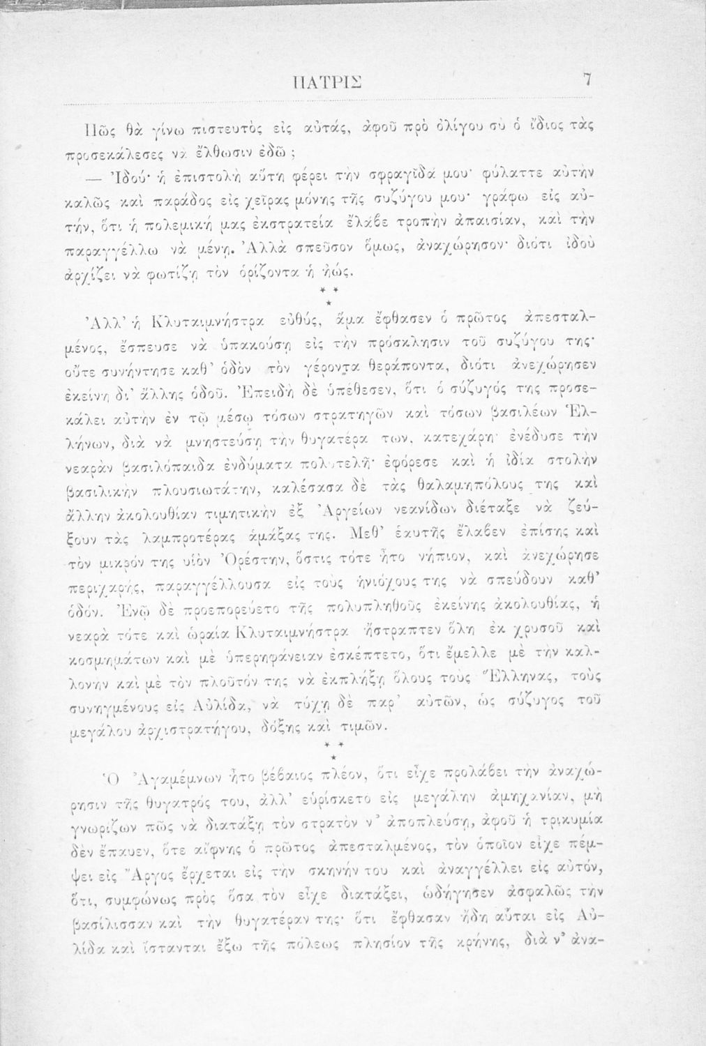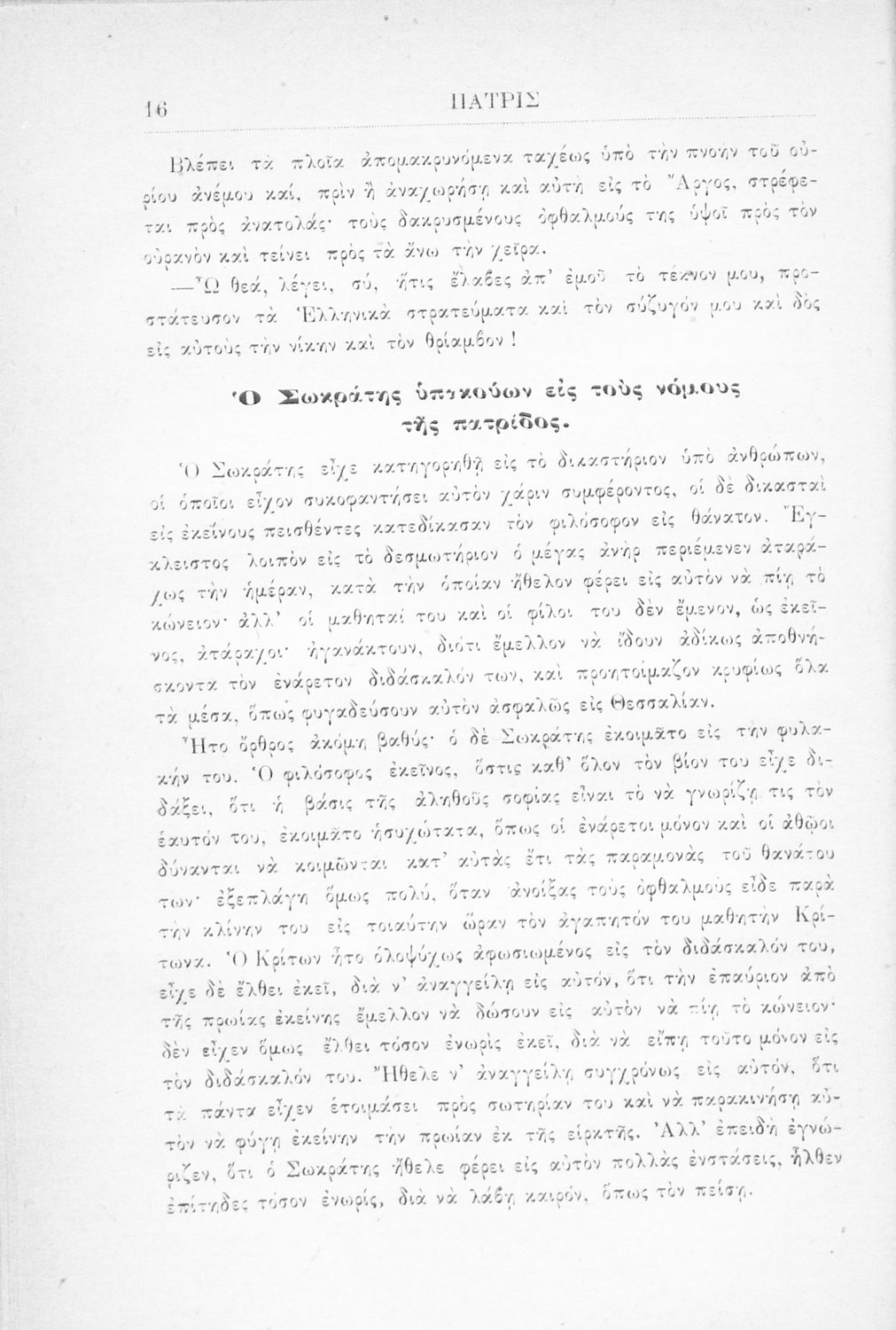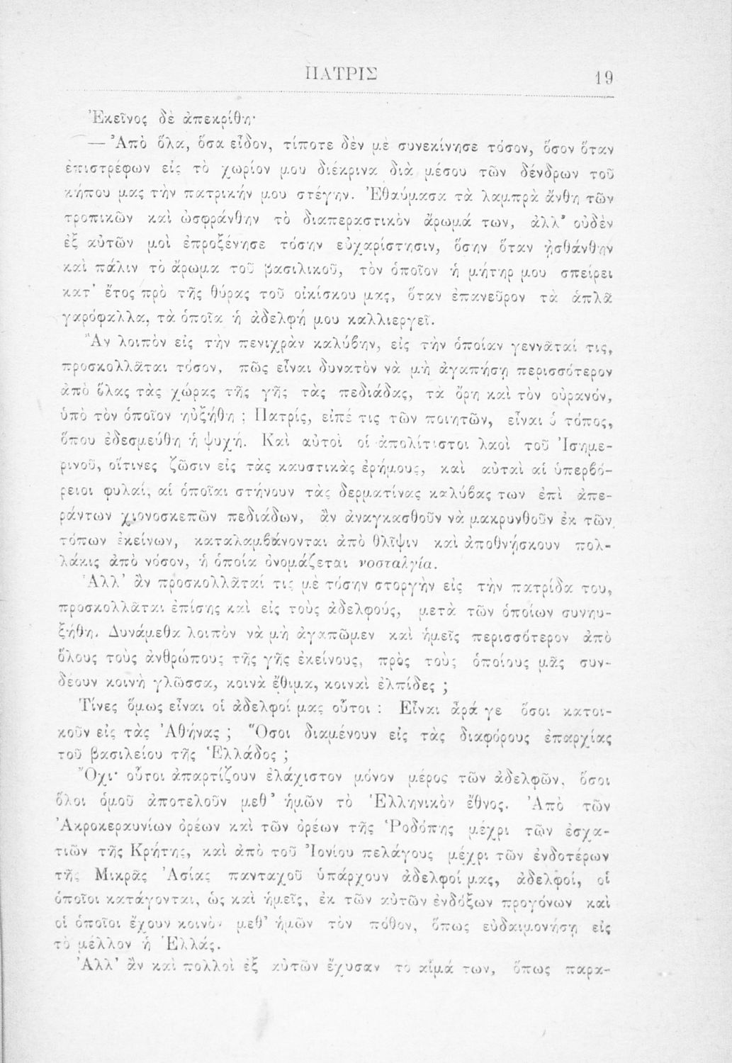Βαθμίδα εκπαίδευσης: Δευτεροβάθμια Τάξη: Α' Ελληνικού Σχολείου Μάθημα: Νέα Ελληνικά Γλώσσα: Καθαρεύουσα Παρουσίαση περιεχομένου: Αναγνωστικό για την Α΄ Ελληνικού Σχολείου για το μάθημα των Νέων Ελληνικών. Περιλαμβάνει πεζά και ποιήματα, των οποίων η θεματογραφία έχει περιεχόμενο εθνικό, πατριωτικό, οικογενειακό, ηθικών αξιών, φυσιογνωστικό, ιστορικό και βιογραφικό. Το σύγγραμμα ήταν εγκεκριμένο για μια πενταετία. |