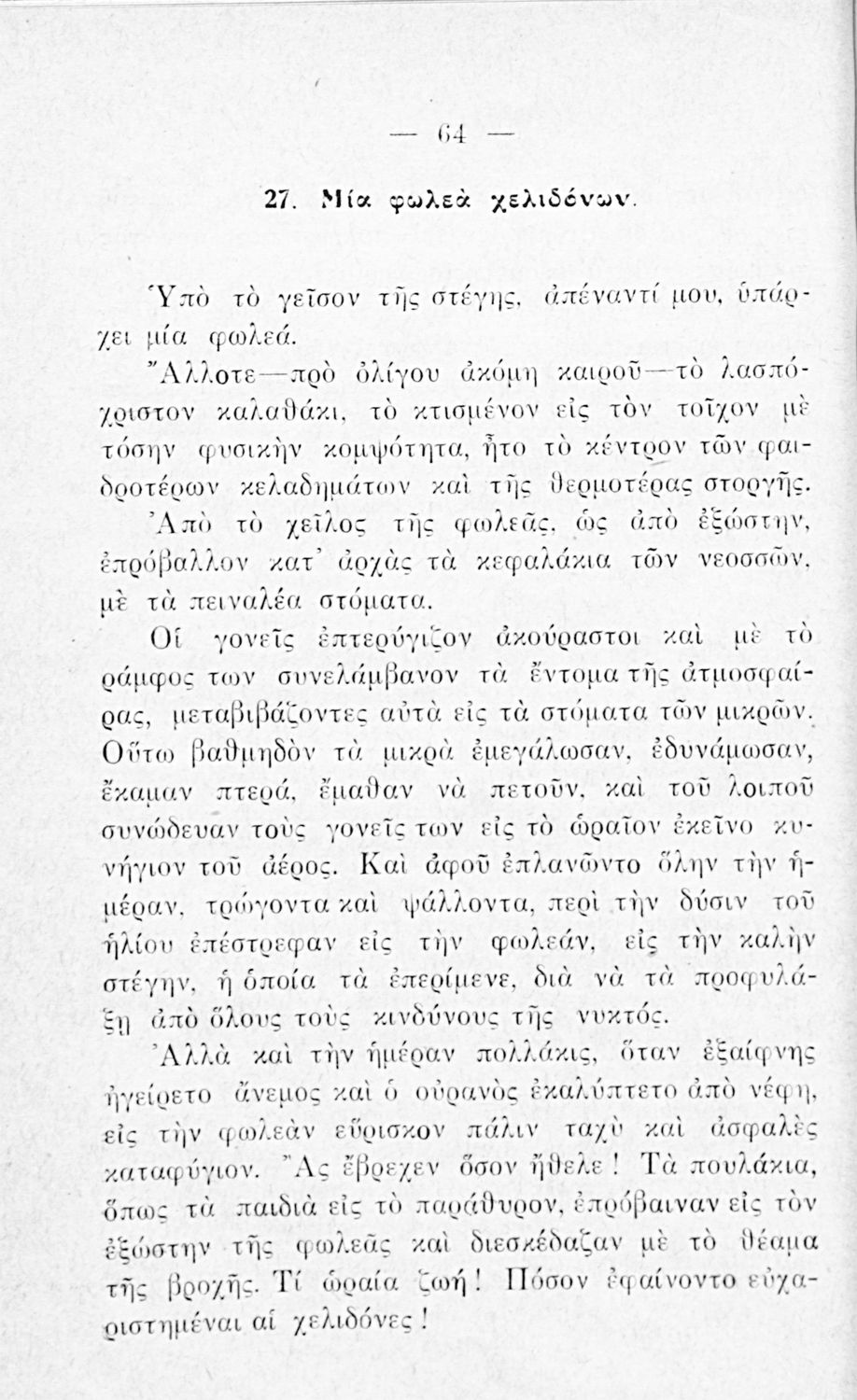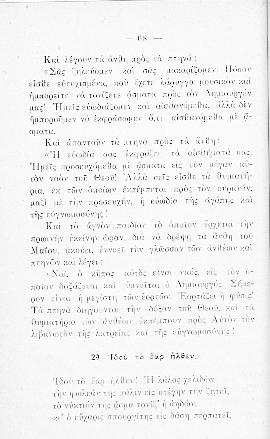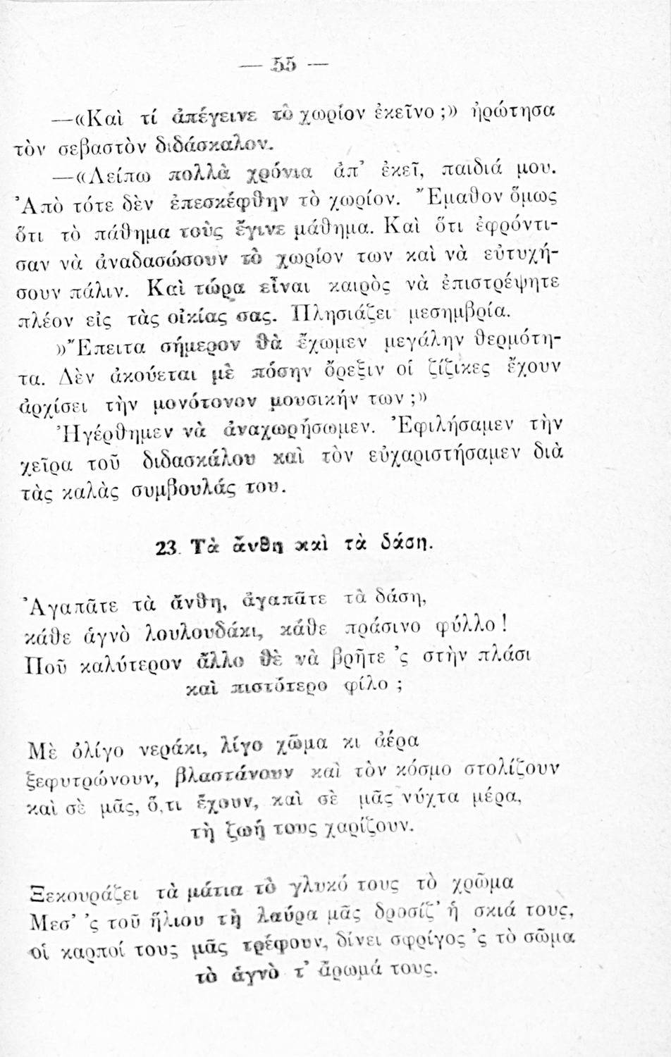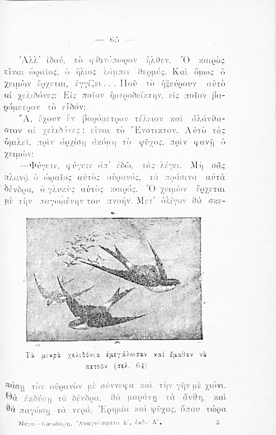 Αναγνωστικό Ε΄ Δημοτικού που περιλαμβάνει ποιήματα και πεζά με θέματα από την ελληνική φύση, τη θρησκεία και την αρχαία ελληνική και βυζαντινή ιστορία.