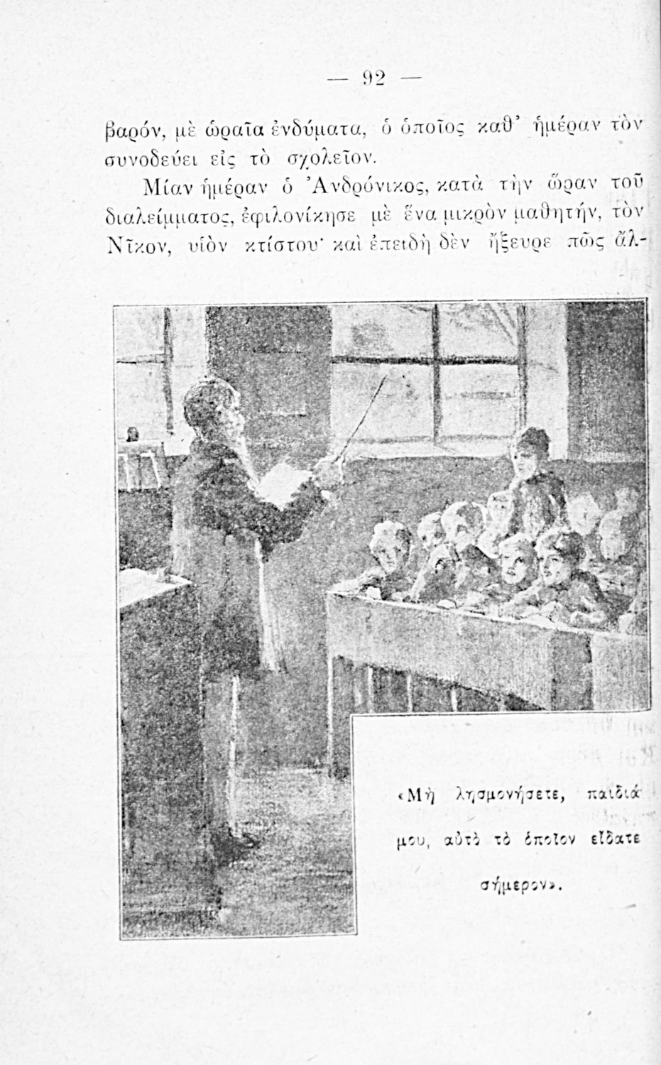Βαθμίδα εκπαίδευσης: Πρωτοβάθμια Τάξη: Ε' Δημοτικού Μάθημα: Νέα Ελληνικά Γλώσσα: Απλή καθαρεύουσα Παρουσίαση περιεχομένου: Αναγνωστικό Ε΄ Δημοτικού που περιλαμβάνει ποιήματα και πεζά με θέματα από την ελληνική φύση, τη θρησκεία και την αρχαία ελληνική και βυζαντινή ιστορία. |