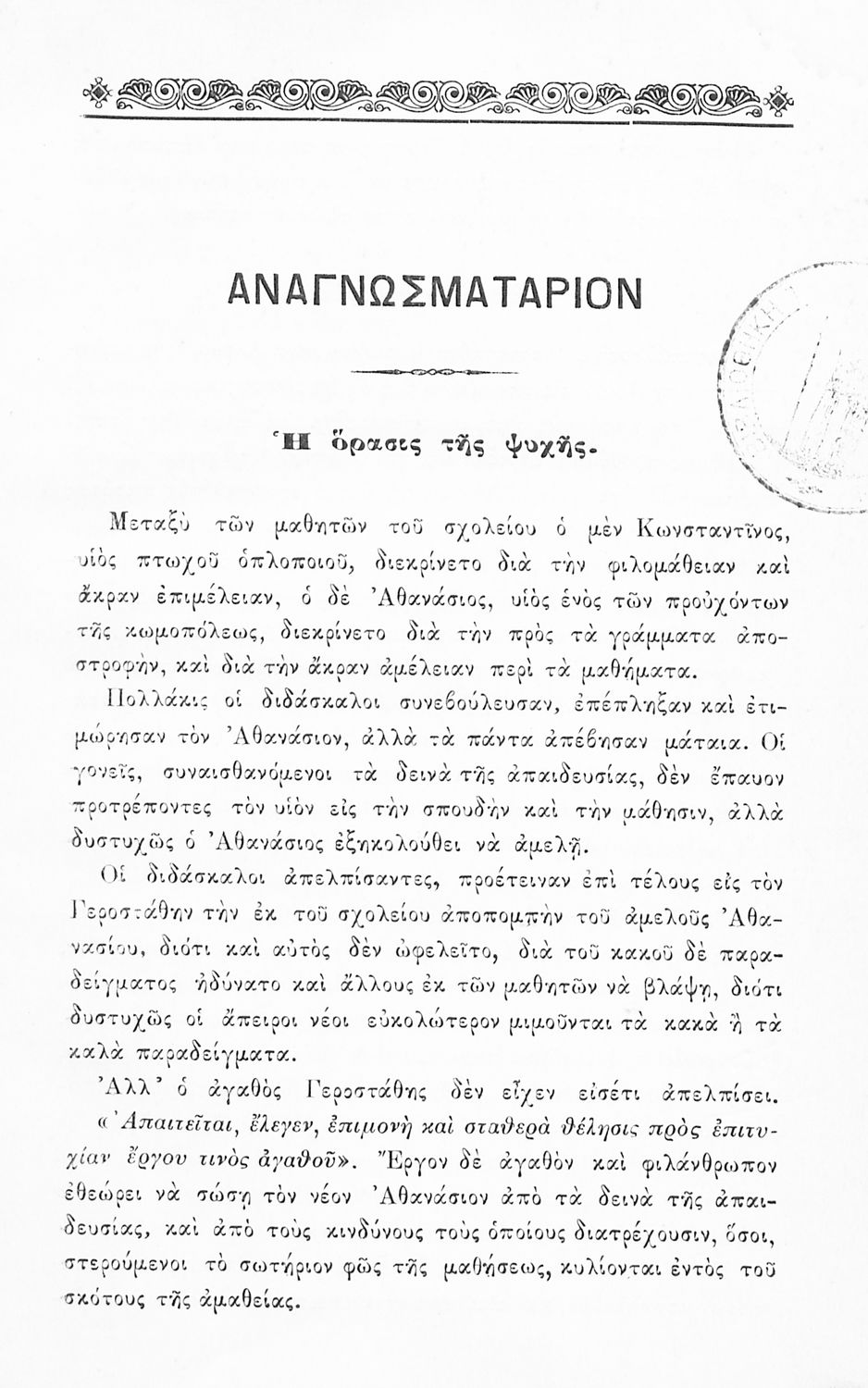 Ελληνικόν αναγνωσματάριον δια τους μαθητάς της Ε΄ τάξεως των Δημοτικών Σχολείων αμφοτέρων των φύλων