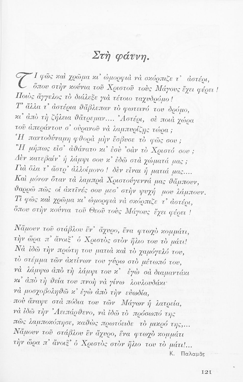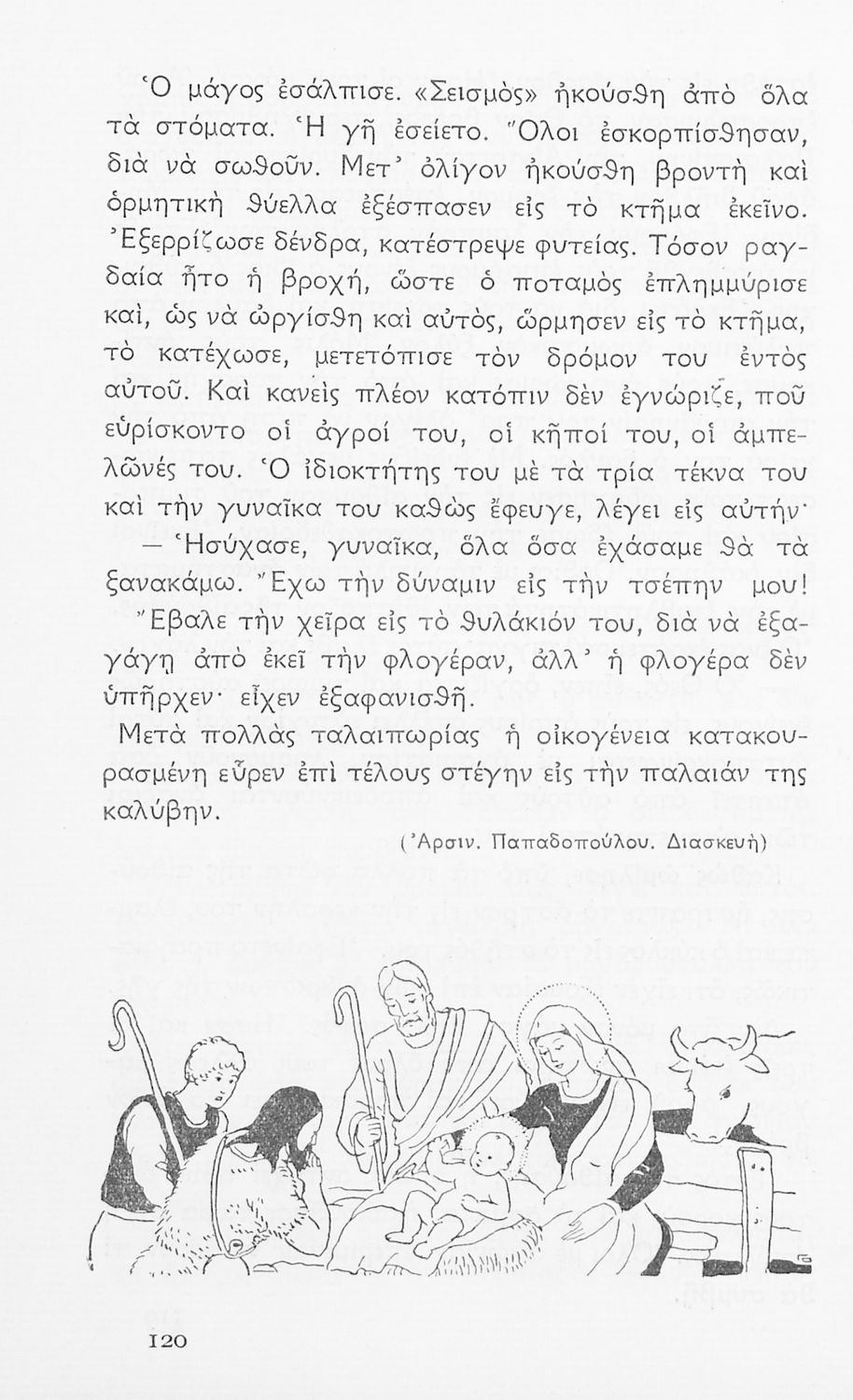 Αναγνωστικό Ε΄ Δημοτικού που περιλαμβάνει πεζογραφήματα εμπνευσμένα από την ελληνική φύση, την αγροτική ζωή και από το τρίπτυχο "Πατρίς- θρησκεία- οικογένεια".