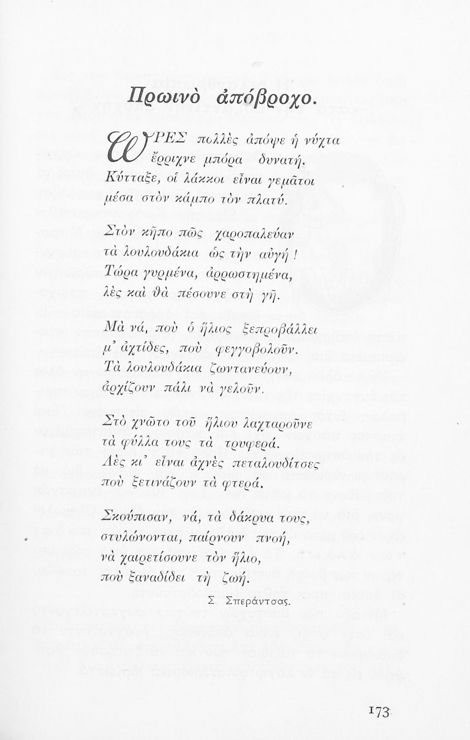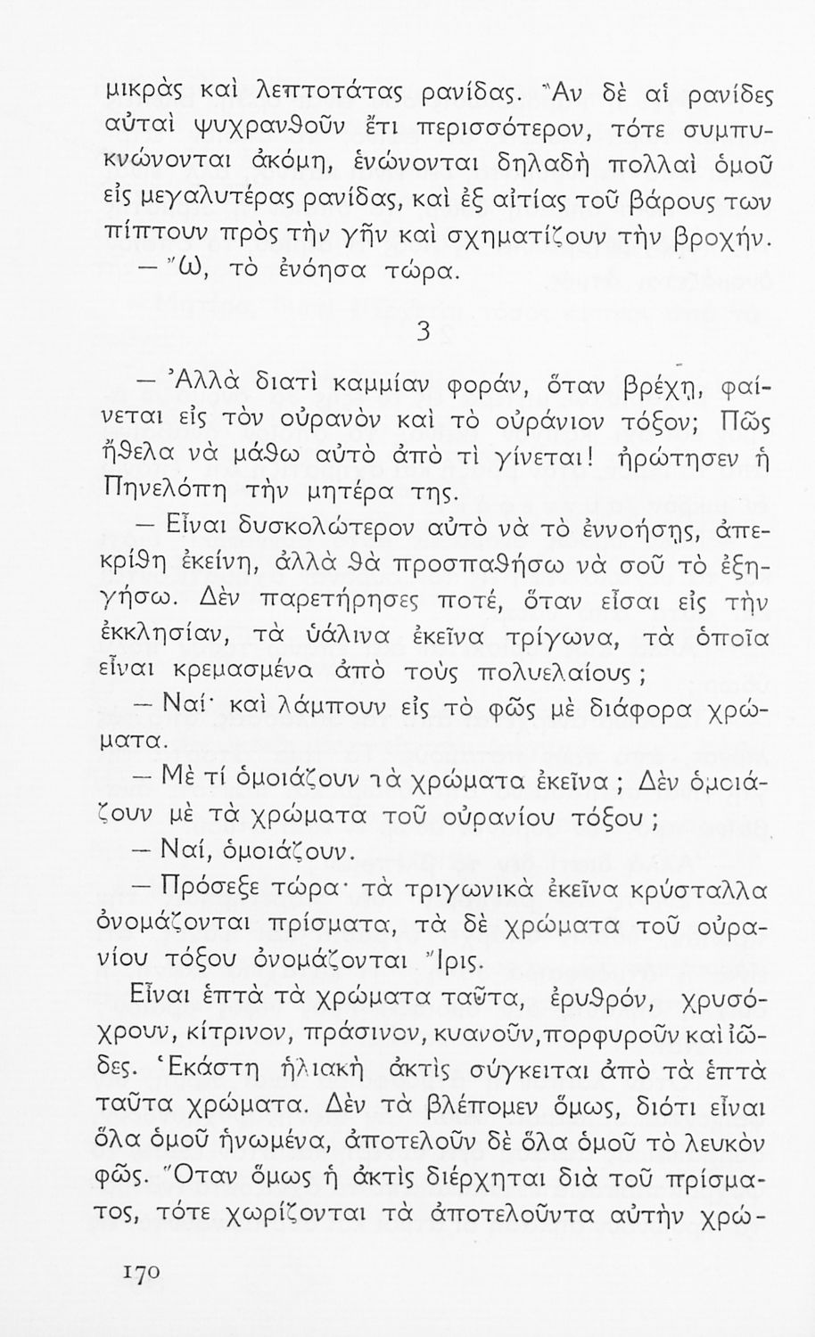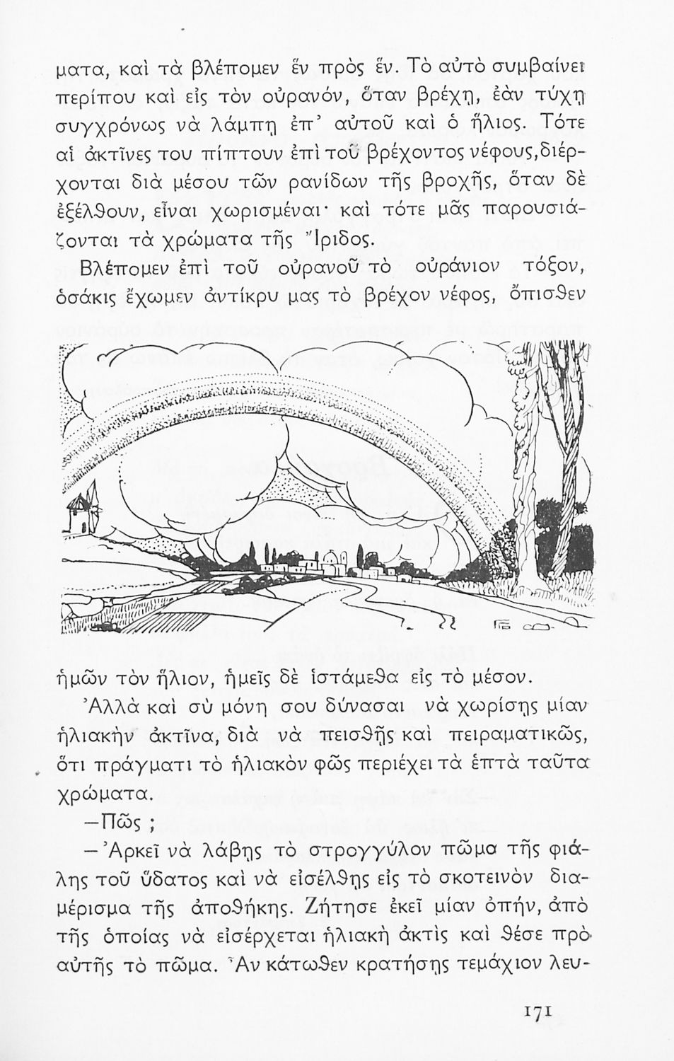 Αναγνωστικό Ε΄ Δημοτικού που περιλαμβάνει πεζογραφήματα εμπνευσμένα από την ελληνική φύση, την αγροτική ζωή και από το τρίπτυχο "Πατρίς- θρησκεία- οικογένεια".