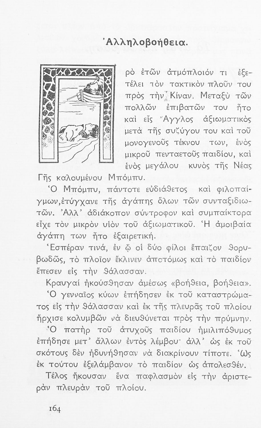 Αναγνωστικό Ε΄ Δημοτικού που περιλαμβάνει κείμενα με θέματα από τη θρησκευτική παράδοση, την οικογενειακή ζωή, την ελληνική μυθολογία, το ζωικό βασίλειο, τις ηθικές αρετές, την πατρίδα, τη βυζαντινή πολιτιστική παράδοση και την υγιεινή.