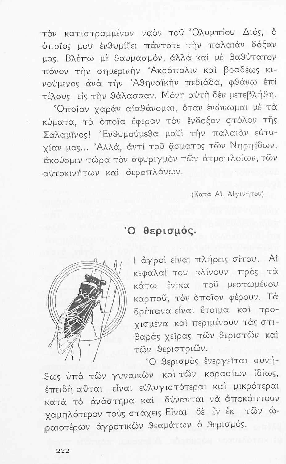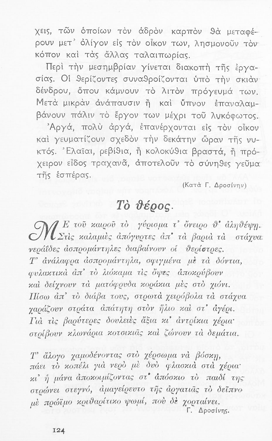 Αναγνωστικό Ε΄ Δημοτικού που περιλαμβάνει πεζογραφήματα εμπνευσμένα από την ελληνική φύση, την αγροτική ζωή και από το τρίπτυχο "Πατρίς- θρησκεία- οικογένεια".
