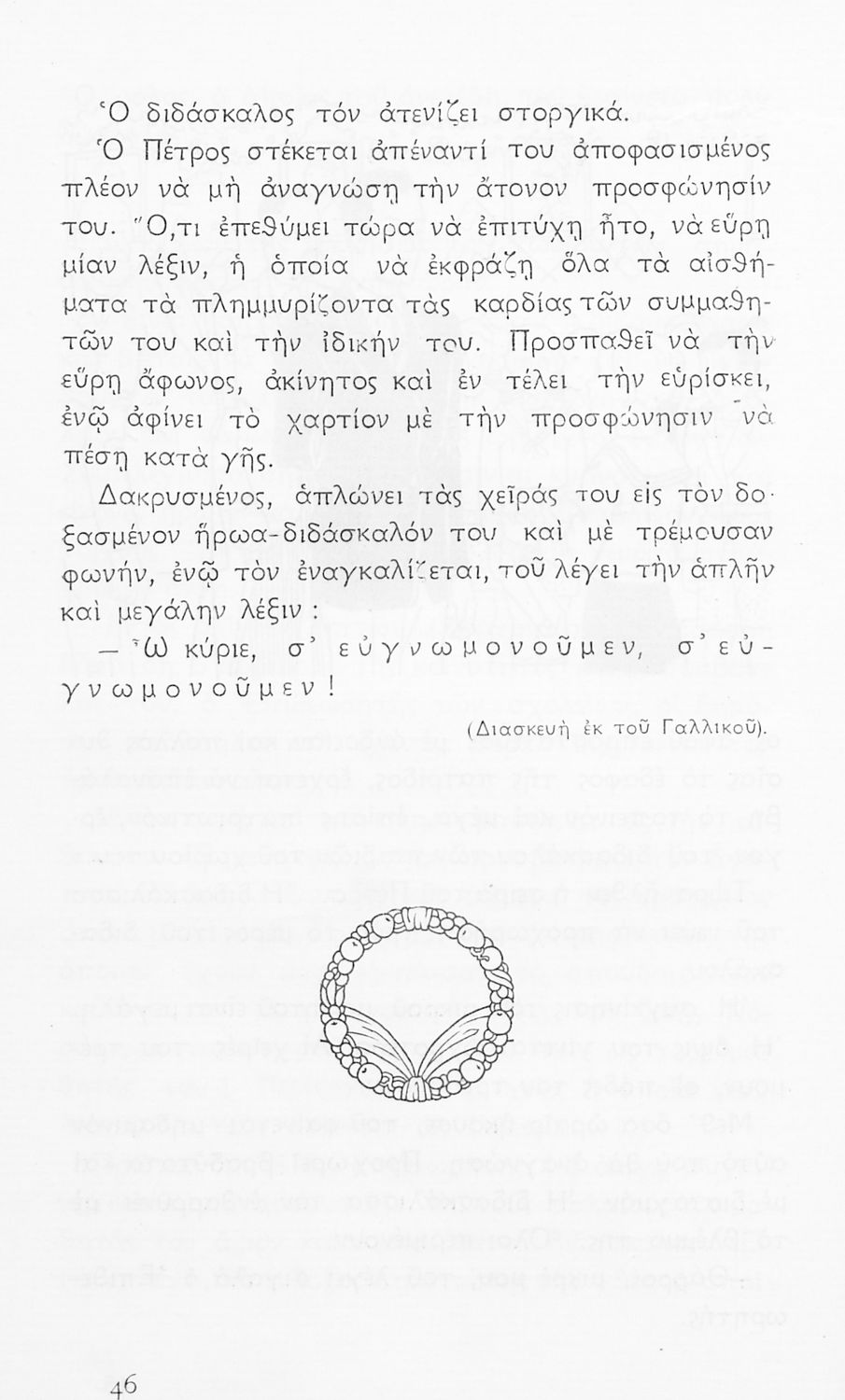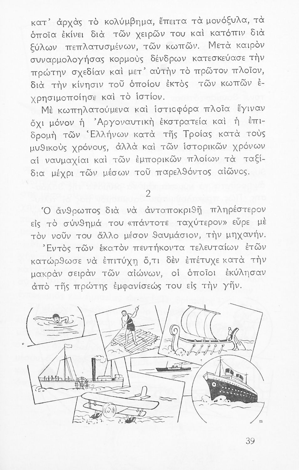 Αναγνωστικό Ε΄ Δημοτικού που περιλαμβάνει κείμενα με θέματα από τη θρησκευτική παράδοση, την οικογενειακή ζωή, την ελληνική μυθολογία, το ζωικό βασίλειο, τις ηθικές αρετές, την πατρίδα, τη βυζαντινή πολιτιστική παράδοση και την υγιεινή.