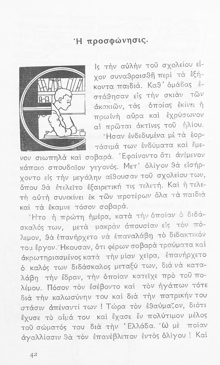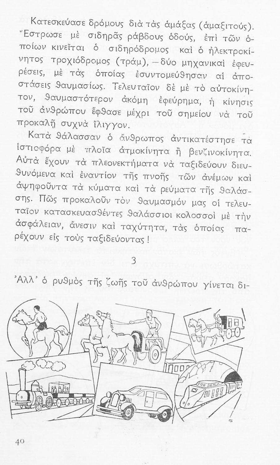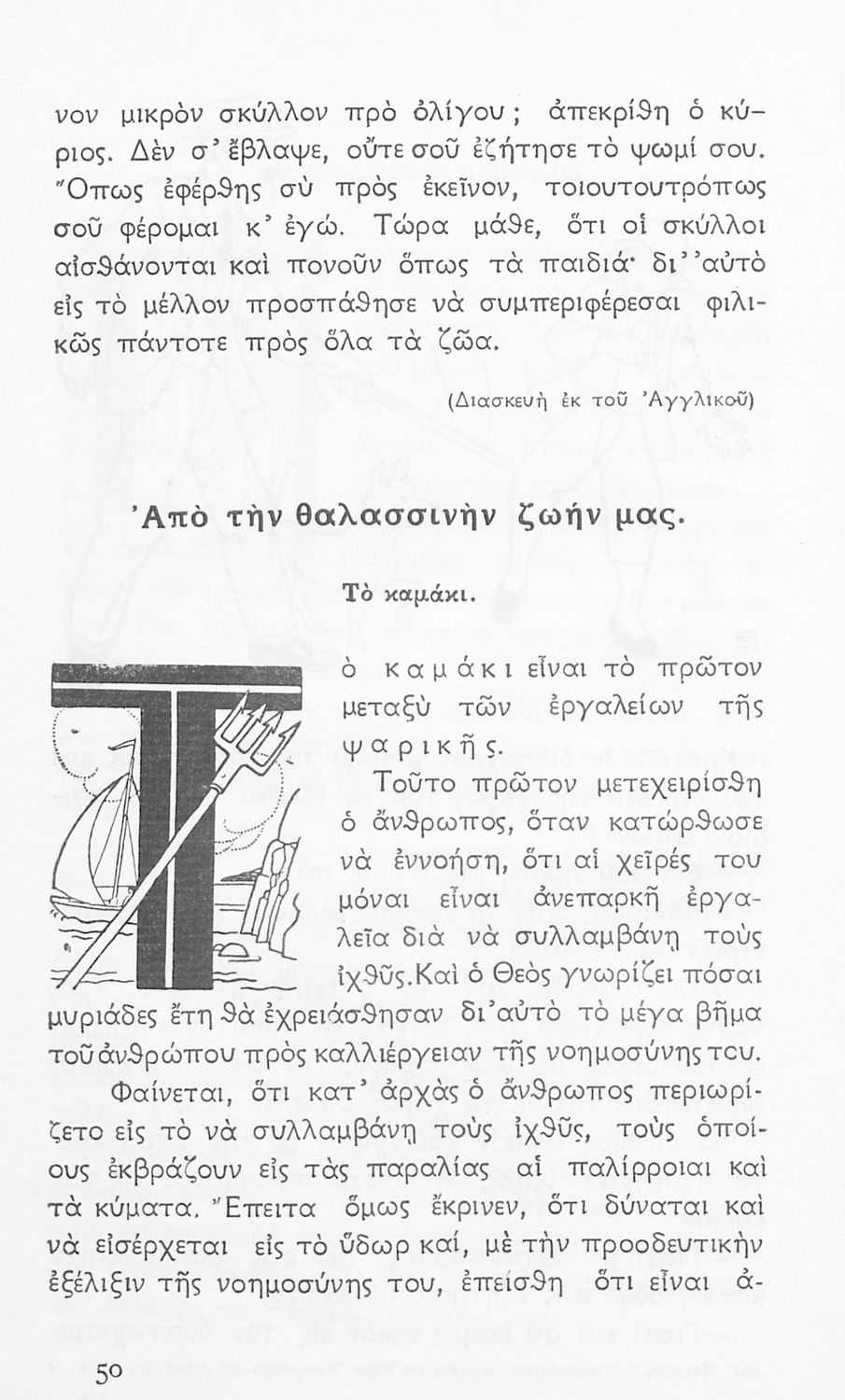 520 ## _aΑναγνωστικό Ε΄ Δημοτικού που περιλαμβάνει κείμενα με θέματα από τη θρησκευτική παράδοση, την οικογενειακή ζωή, την ελληνική μυθολογία, το ζωικό βασίλειο, τις ηθικές αρετές, την πατρίδα, τη βυζαντινή πολιτιστική παράδοση και την υγιεινή.