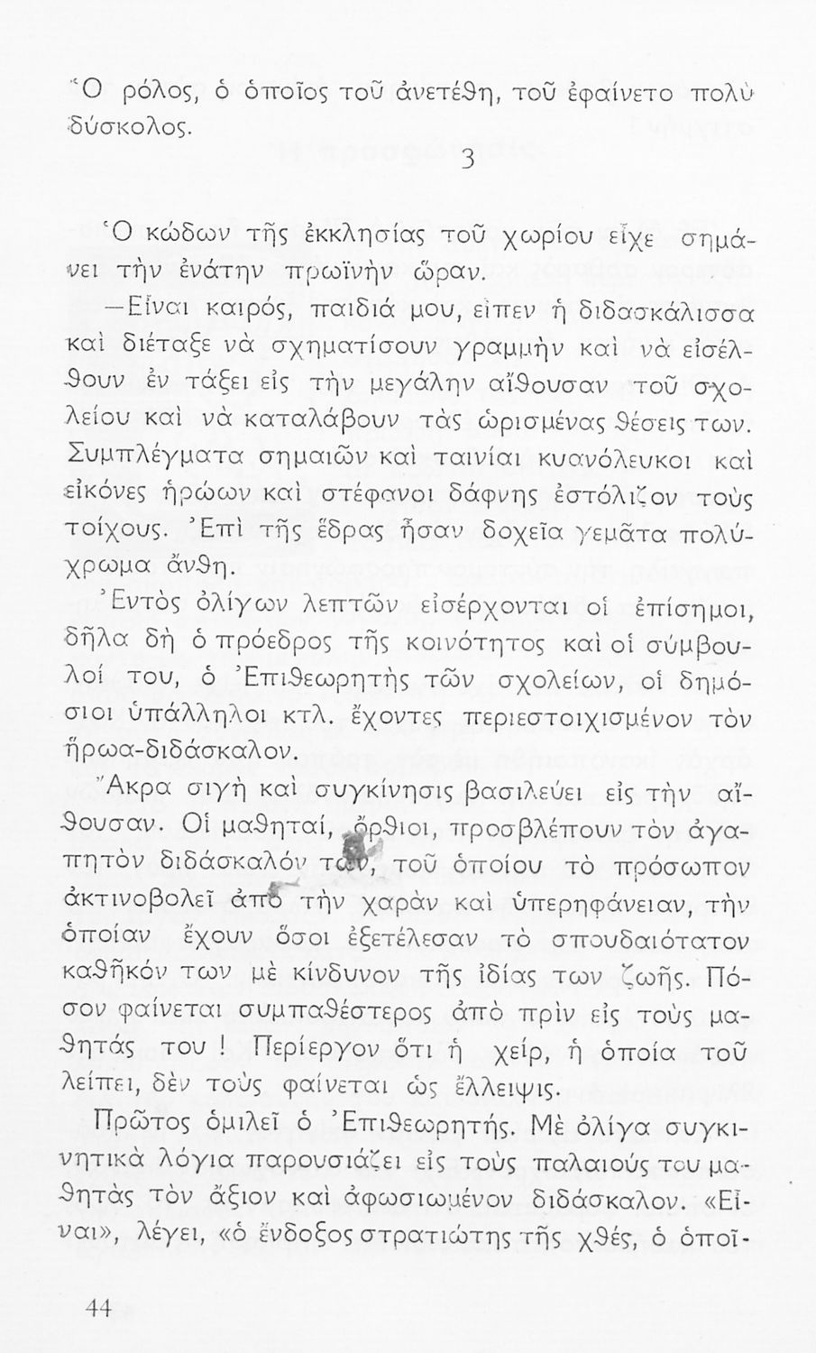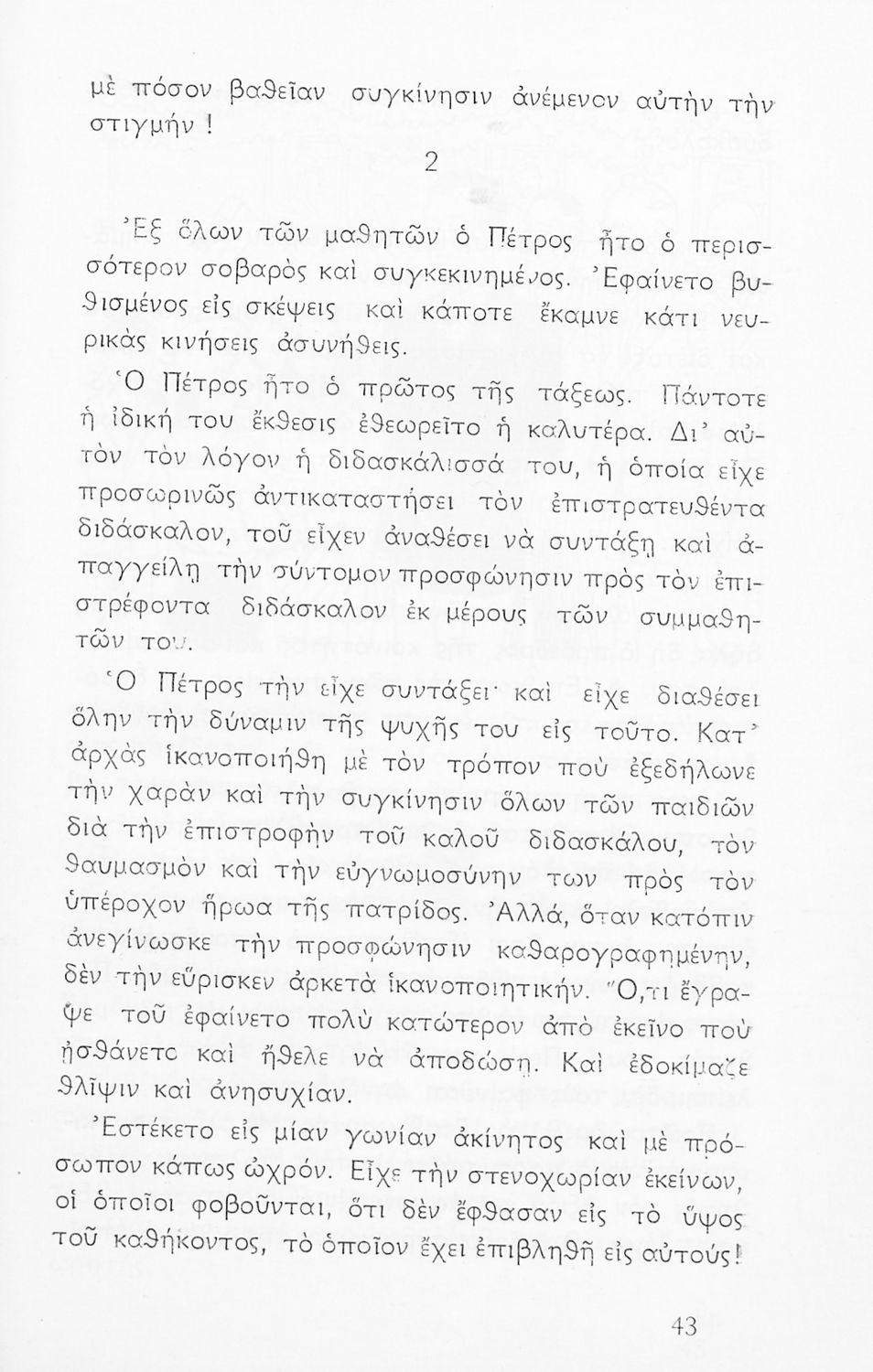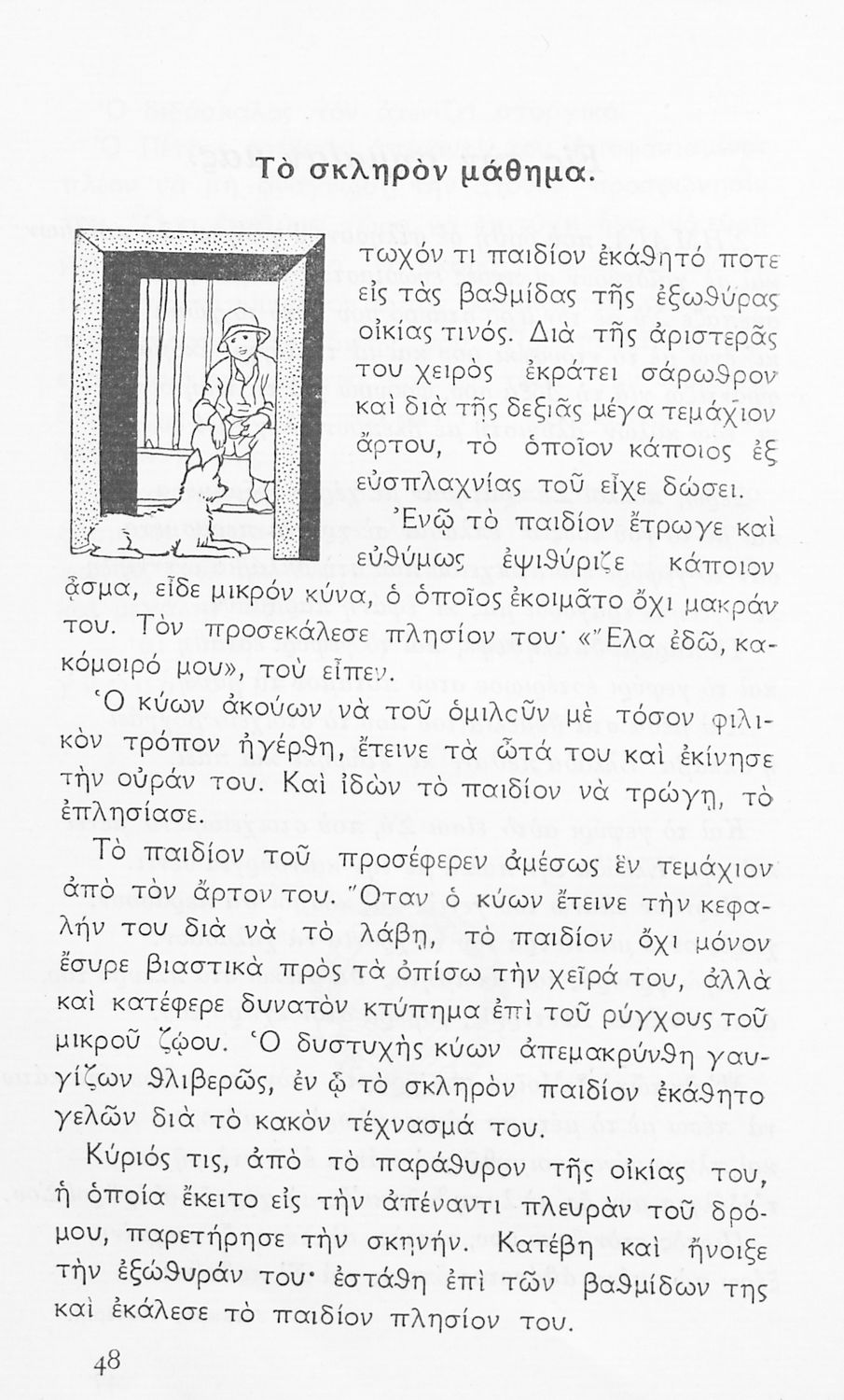 Βαθμίδα εκπαίδευσης: Πρωτοβάθμια Τάξη: Ε' Δημοτικού Μάθημα: Νέα Ελληνικά Γλώσσα: Απλή καθαρεύουσα Παρουσίαση περιεχομένου: Αναγνωστικό Ε΄ Δημοτικού που περιλαμβάνει κείμενα με θέματα από τη θρησκευτική παράδοση, την οικογενειακή ζωή, την ελληνική μυθολογία, το ζωικό βασίλειο, τις ηθικές αρετές, την πατρίδα, τη βυζαντινή πολιτιστική παράδοση και την υγιεινή. |