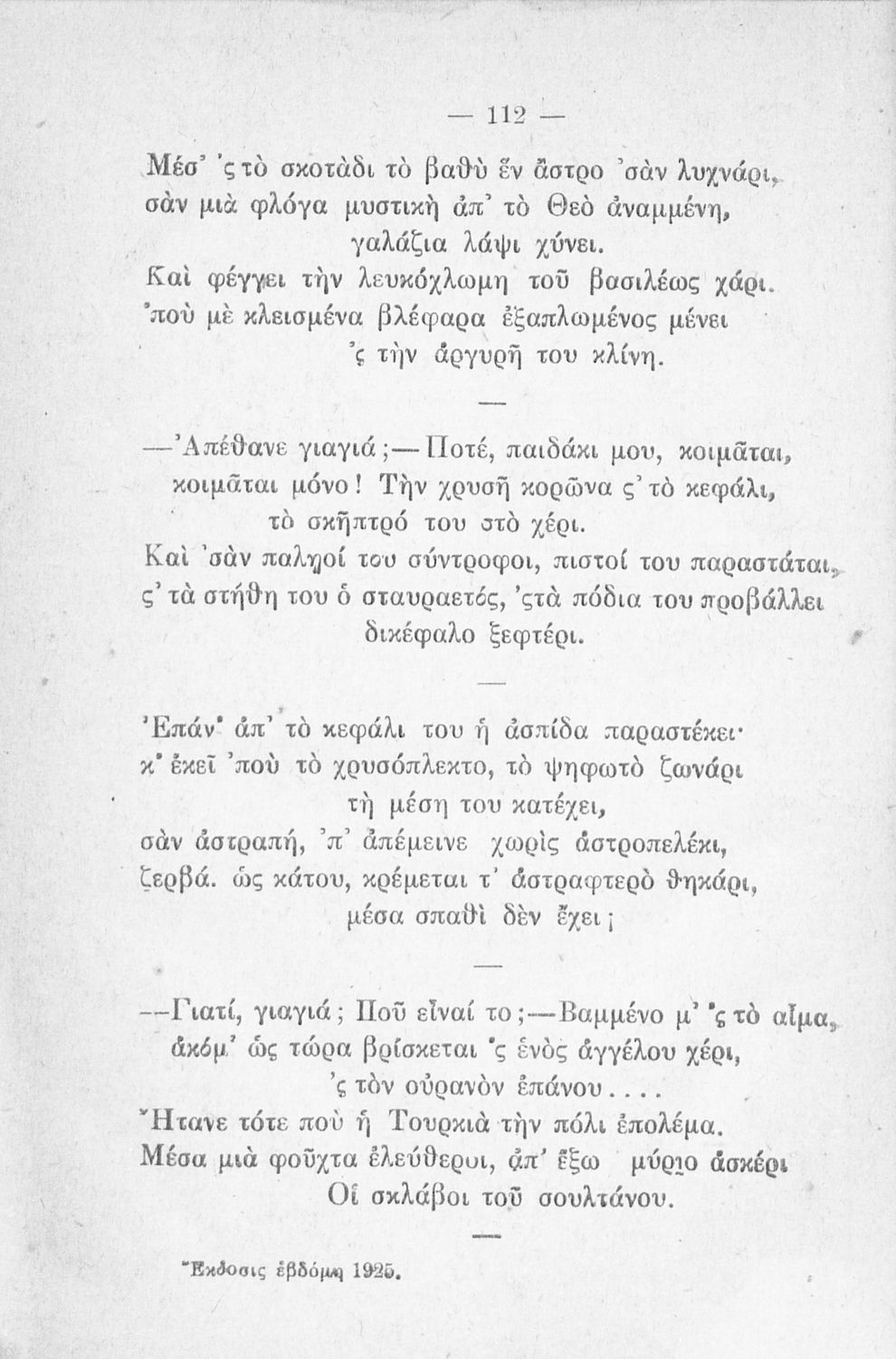 Αναγνωστικό Ε' Δημοτικού που περιέχει πεζά και ποιήματα εμπνευσμένα από τη θρησκευτική, εθνική, κοινωνική και ατομική ζωή, και την ελληνική φύση και ιστορία.