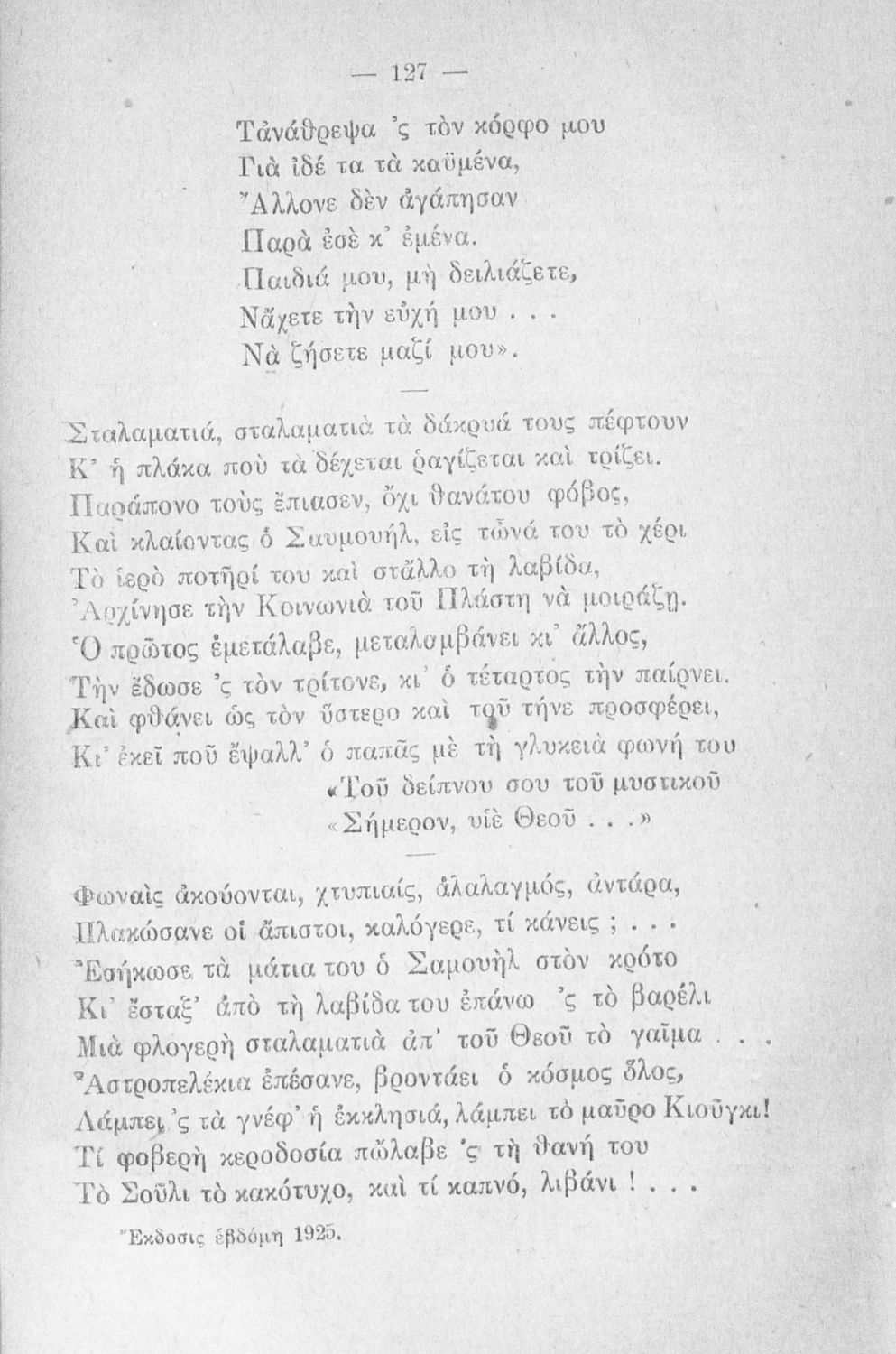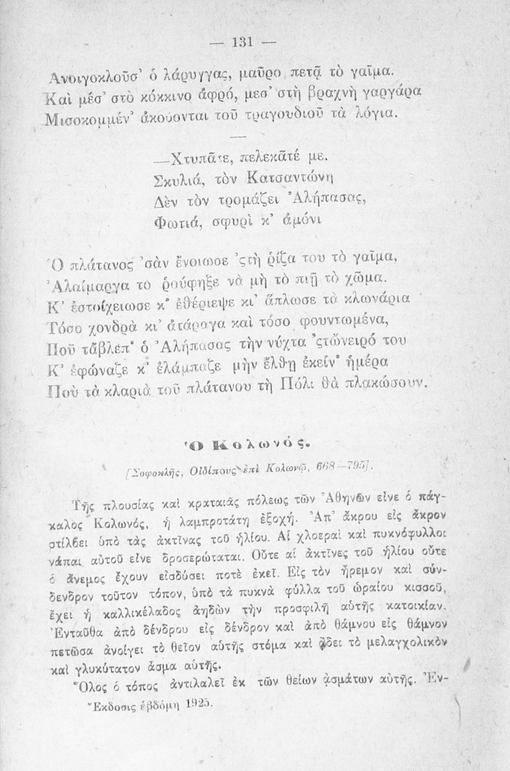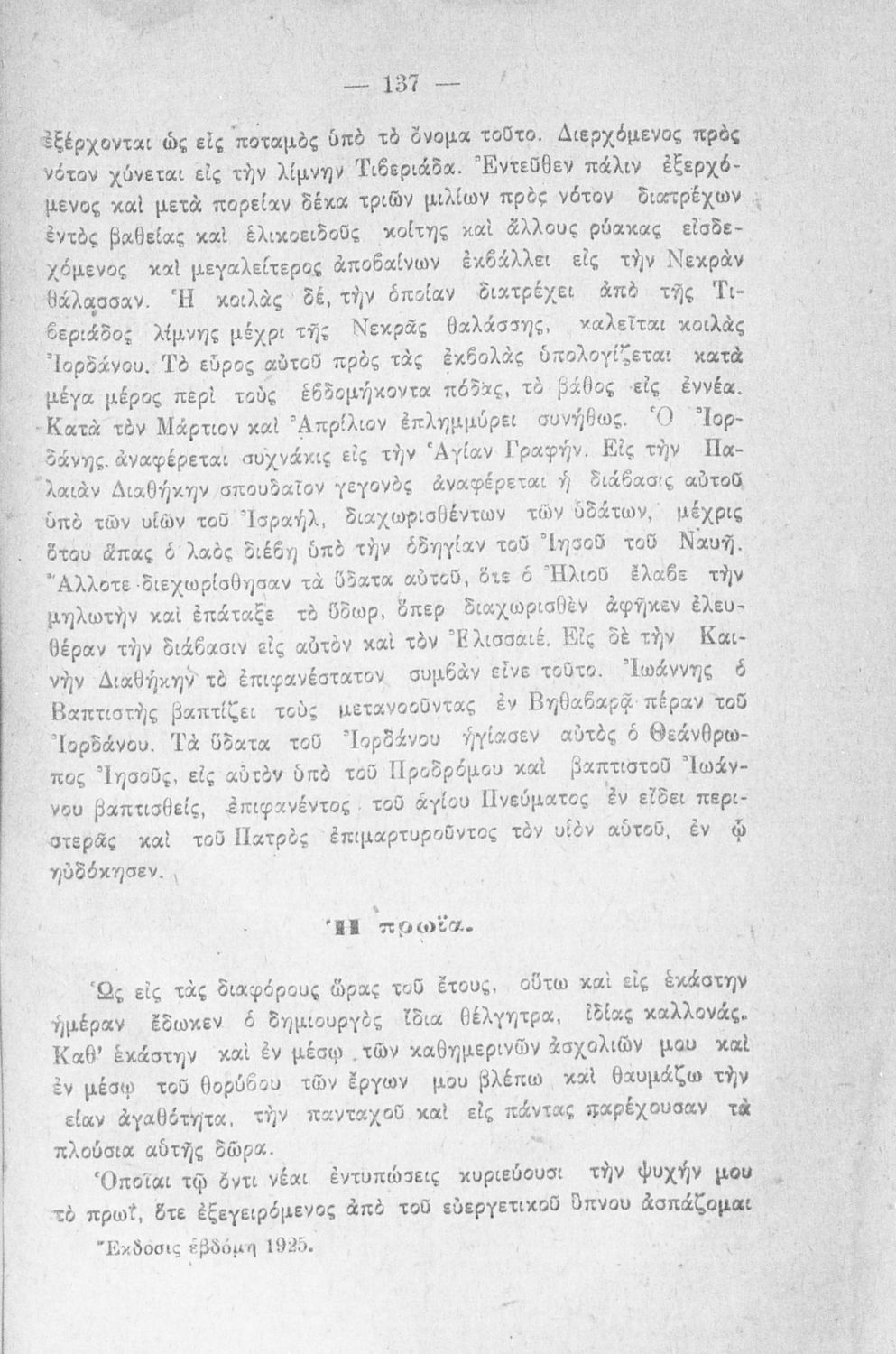 Αναγνωστικό Ε' Δημοτικού που περιέχει πεζά και ποιήματα εμπνευσμένα από τη θρησκευτική, εθνική, κοινωνική και ατομική ζωή, και την ελληνική φύση και ιστορία.
