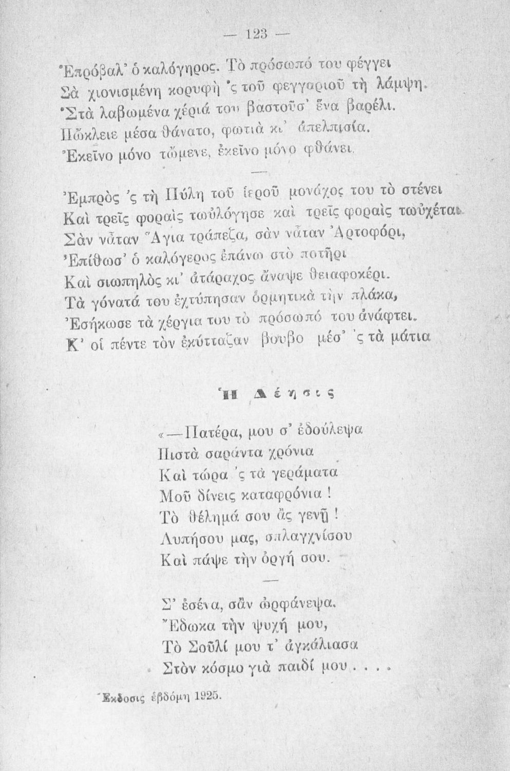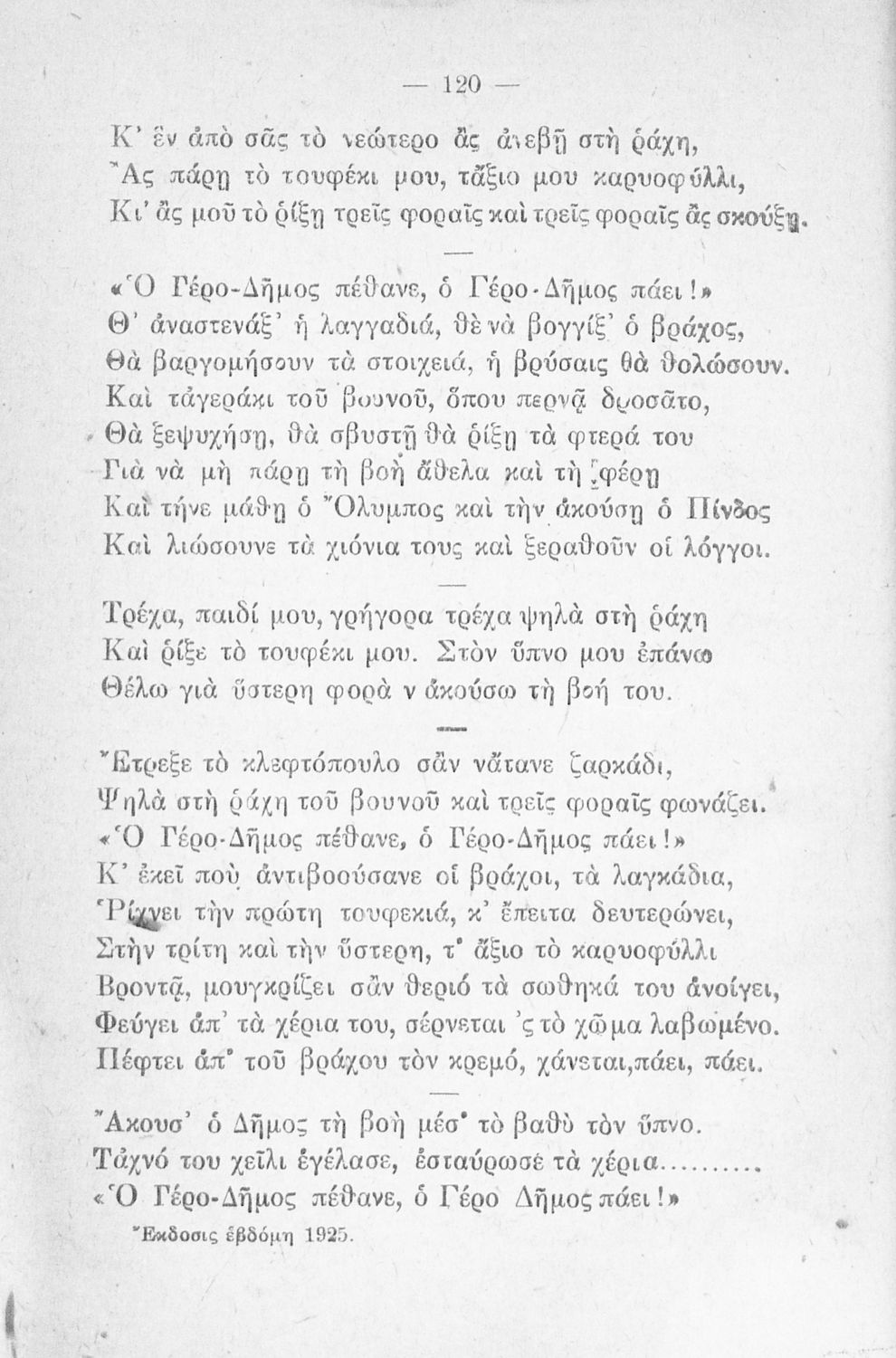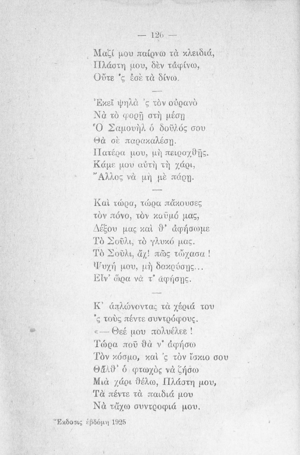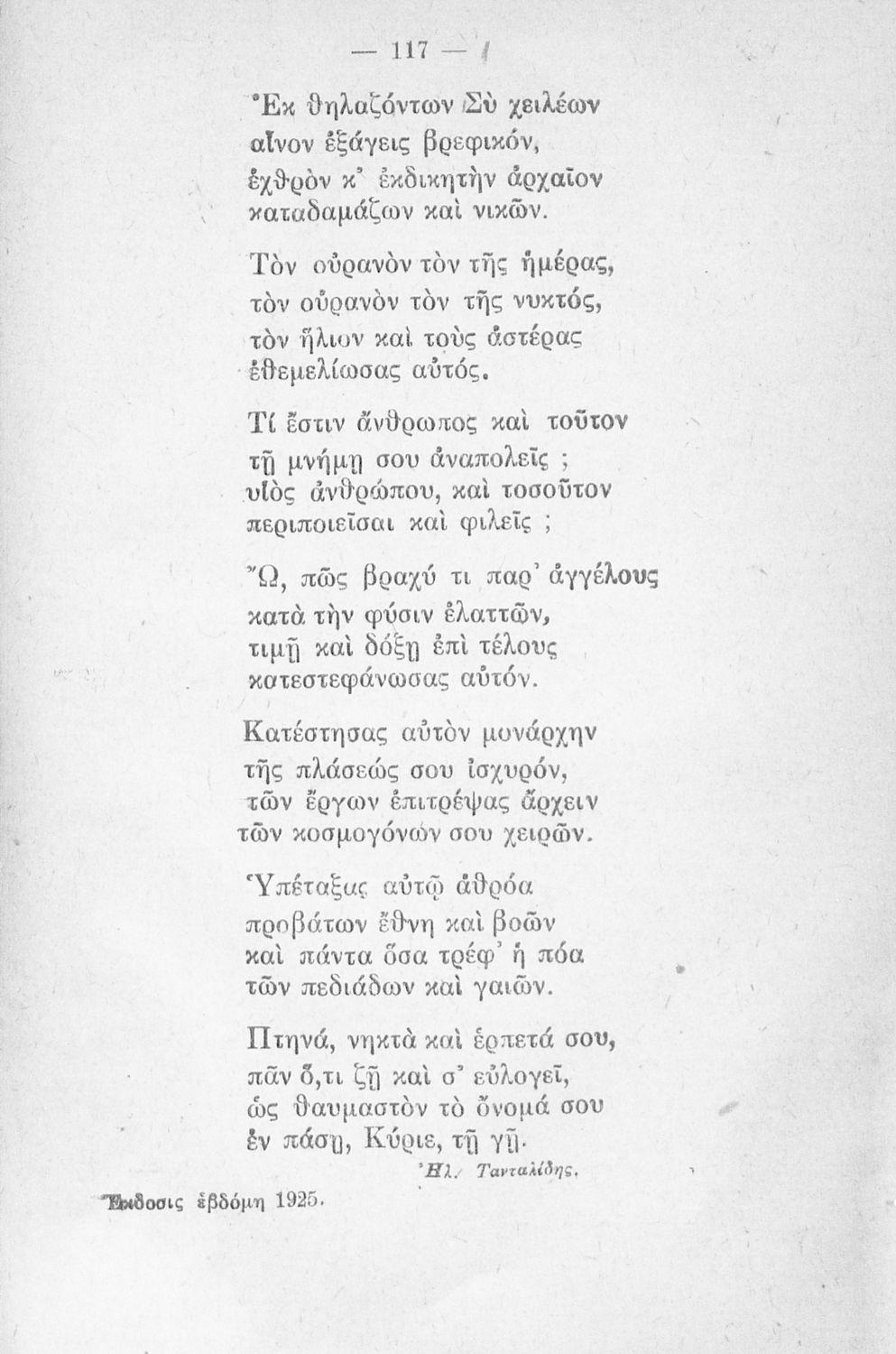 Αναγνωστικό Ε' Δημοτικού που περιέχει πεζά και ποιήματα εμπνευσμένα από τη θρησκευτική, εθνική, κοινωνική και ατομική ζωή, και την ελληνική φύση και ιστορία.