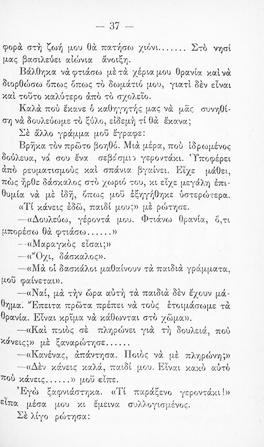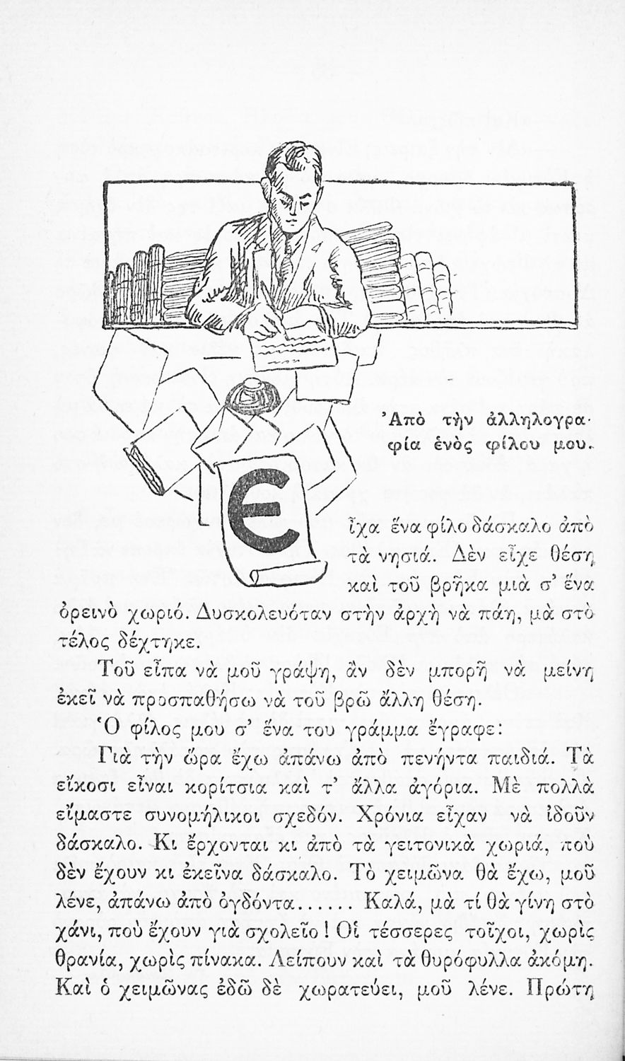 Αναγνωστικό Ε΄ Δημοτικού που περιλαμβάνει πεζά και ποιήματα Ελλήνων λογοτεχνών με θέματα από την καθημερινή και οικογενειακή ζωή, τις "εθνικές τραγωδίες και δόξες" και την ελληνική φύση.