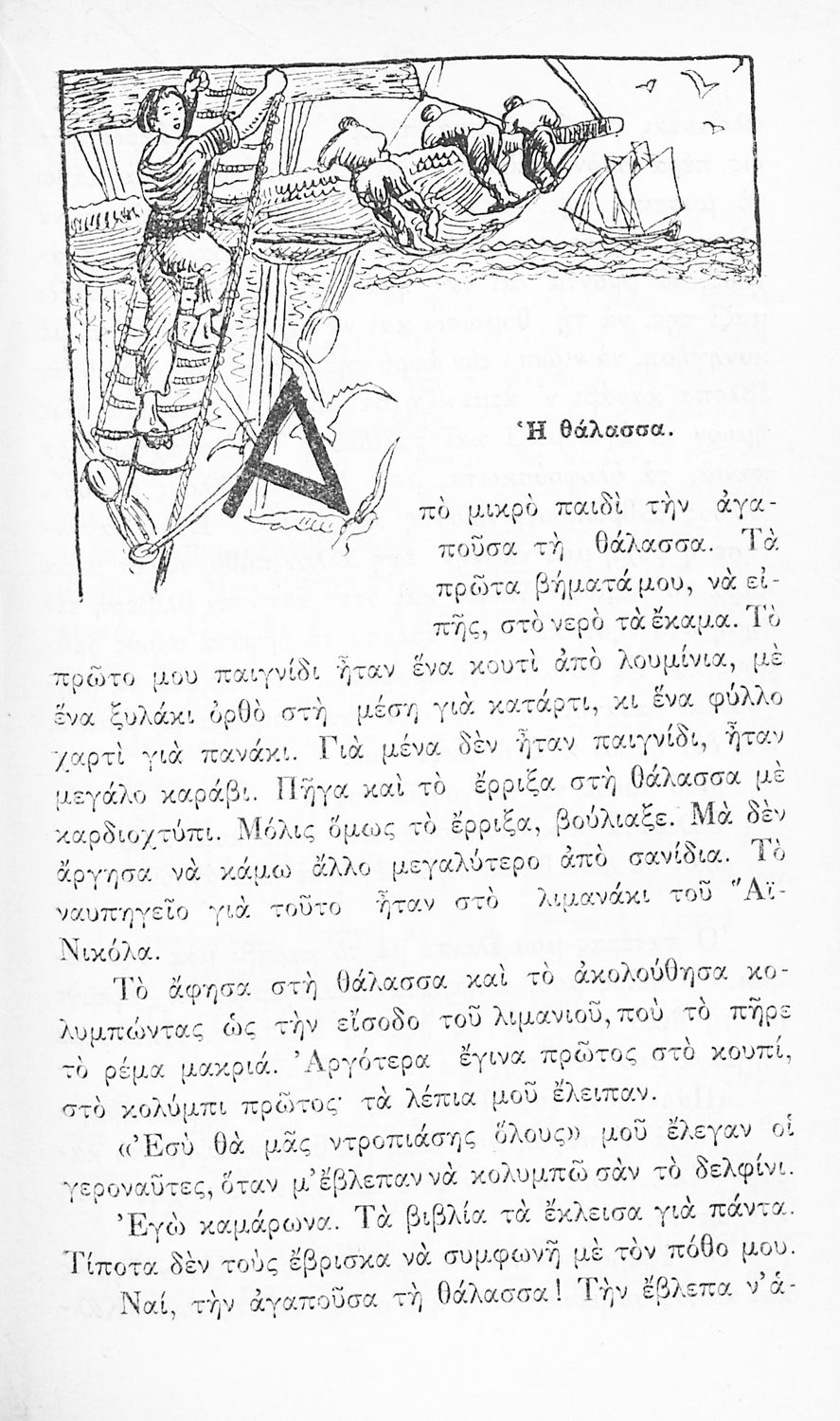Αναγνωστικό Ε΄ Δημοτικού που περιλαμβάνει πεζά και ποιήματα Ελλήνων λογοτεχνών με θέματα από την καθημερινή και οικογενειακή ζωή, τις "εθνικές τραγωδίες και δόξες" και την ελληνική φύση.