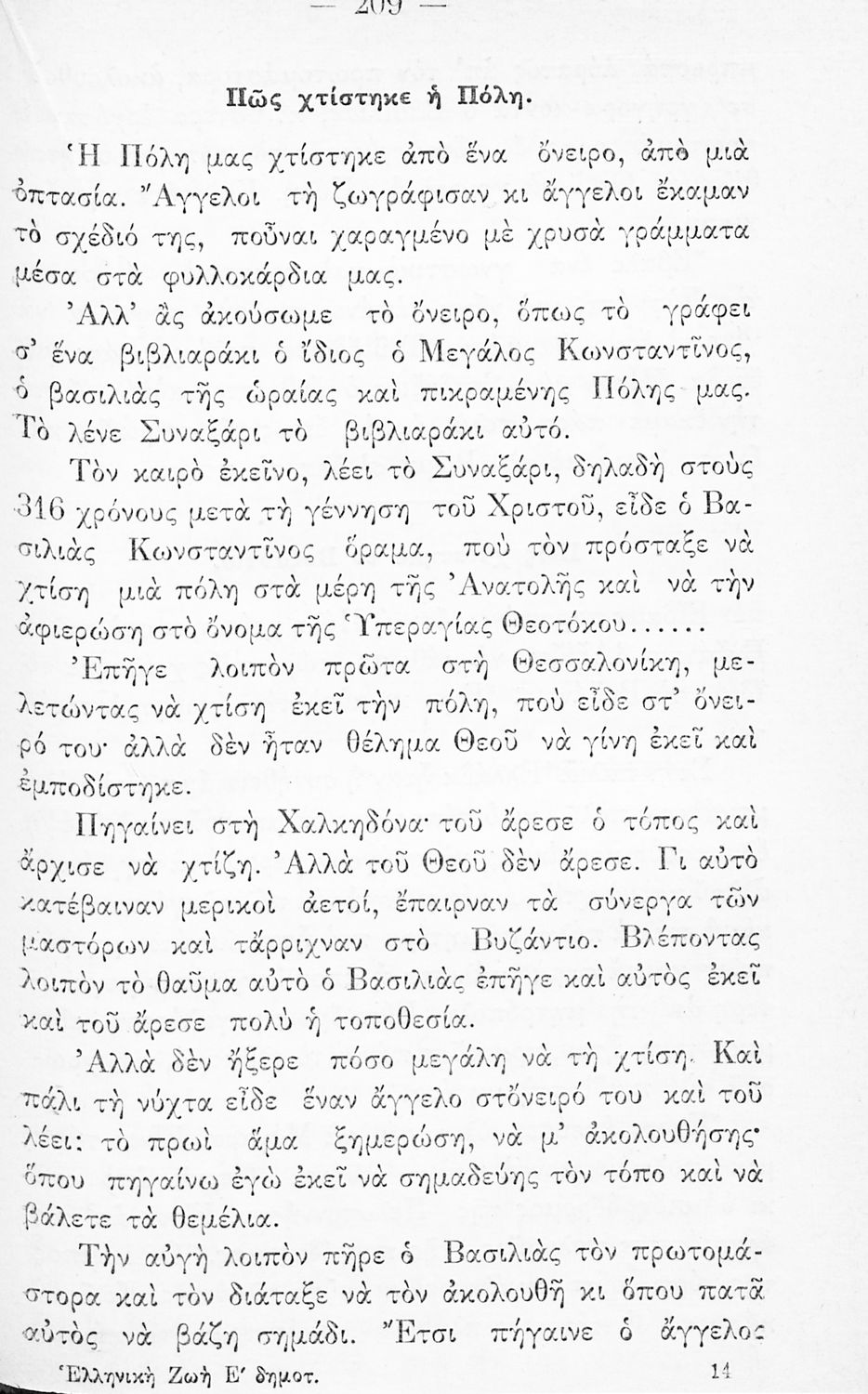 Αναγνωστικό Ε΄ Δημοτικού που περιέχει πεζά και ποιήματα εμπνευσμένα από τη θρησκευτική, εθνική, κοινωνική ζωή καθώς και από τις ασχολίες των Ελλήνων, την αρχαία και σύγχρονη ελληνική ιστορία και τον πολιτισμό.