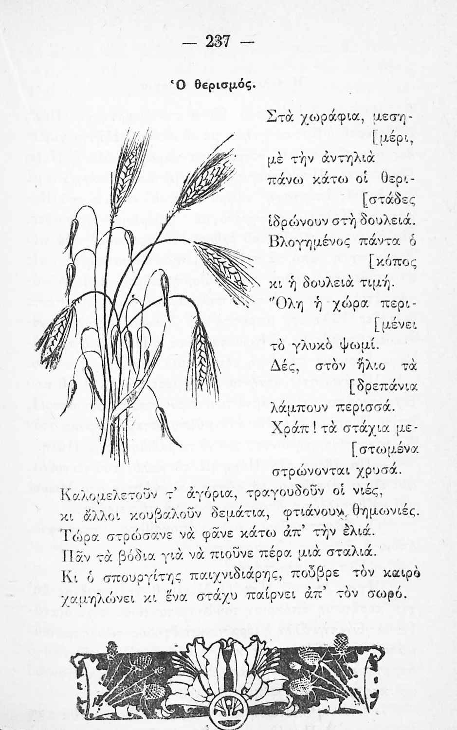 Αναγνωστικό Ε΄ Δημοτικού που περιέχει πεζά και ποιήματα εμπνευσμένα από τη θρησκευτική, εθνική, κοινωνική ζωή καθώς και από τις ασχολίες των Ελλήνων, την αρχαία και σύγχρονη ελληνική ιστορία και τον πολιτισμό.