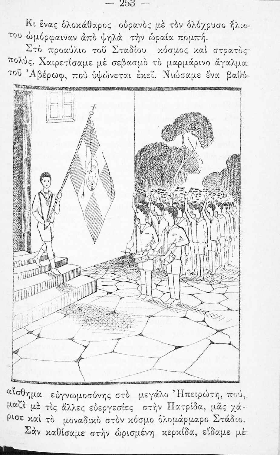 Αναγνωστικό Ε΄ Δημοτικού που περιέχει κείμενα εμπνευσμένα από την εθνική, κοινωνική και οικογενειακή ζωή και την ελληνική φύση, μυθολογία και ιστορία. Φέρει το σύμβολο της δικτατορίας.